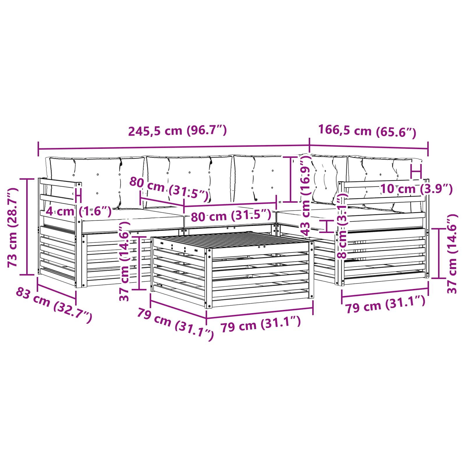 - 5 x Rückenkissen: 80 x 43 x 10 cm (LxBxH)
