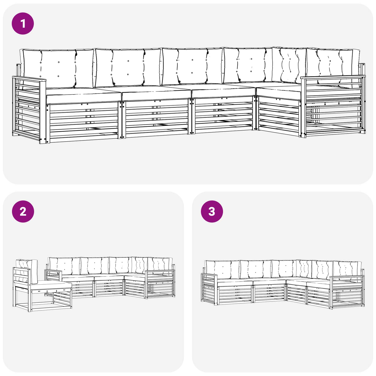 - 5 x Sitzkissen: 80 x 80 x 8 cm (LxBxH)