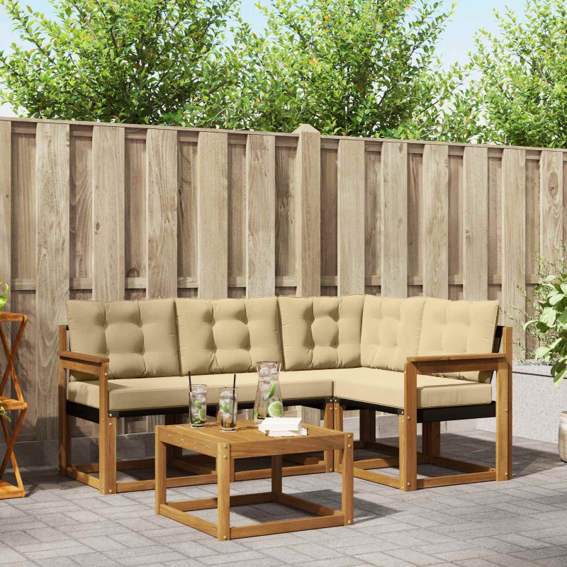 Dieses moderne Sofaset bringt frischen Wind und wertet jeden Außenbereich mühelos auf. Es eignet sich super für Garten-, Terrassen-, Hinterhof- oder Poolbereiche und sein schlichtes Design überzeugt mit Einfachheit und Funktionalität. Die klaren Linien und die minimalistische Gestaltung schaffen ein harmonisches Gleichgewicht zwischen Komfort und Stil. Genieß den Charme für den Ausblick im Freien mit einem Set, das nicht nur gut aussieht, sondern auch eine gemütliche Rückzugsmöglichkeit bietet. Materialien: Aus massivem Akazienholz für Rahmen und Tischplatte, die langlebige Qualität macht sie wetterfest. Zusammen mit der Textilene-Sitzfläche bekommst du eine schicke Textur, die das Verblassen übersteht und angenehm ist. Enthaltene Komponenten: Das Set hat abnehmbare Outdoor-Kissen mit Reißverschlüssen. Diese Teile sorgen für viel Komfort und erleichtern die Pflege, sodass sie immer gut aussehen. Funktionen/Funktion/Design: Genieß die praktische Tischplatte mit Rillen, die für guten Wasserablauf nach Regen sorgt. Die dick gepolsterten Kissen ergänzen die Rückenlehne und bieten dir luxuriösen Komfort beim Entspannen oder Nachdenken. Empfohlene Verwendung: Dieses vielseitige Set ist perfekt für draußen, sei es auf Terrassen oder in Gärten. Es schafft eine einladende Atmosphäre für Gäste oder ruhige Momente alleine. Dank seiner Flexibilität eignet es sich für viele Aktivitäten im Freien. Pflege und Wartung: Es ist echt easy in der Pflege. Wisch einfach mit einem feuchten Tuch drüber, um es zu reinigen. Die wetterfesten Kissen bleiben frisch und schick, damit du über die Jahreszeiten hinweg stilvoll entspannen kannst.