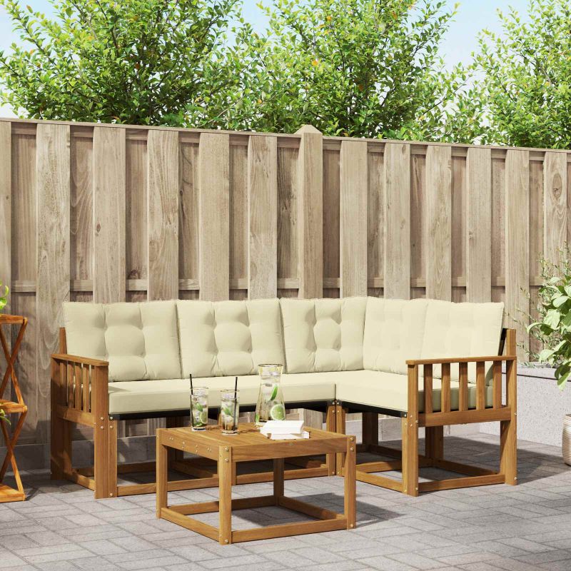 Dieses moderne Sofaset bringt frischen Wind und wertet jeden Außenbereich mühelos auf. Es eignet sich super für Garten-, Terrassen-, Hinterhof- oder Poolbereiche und sein schlichtes Design überzeugt mit Einfachheit und Funktionalität. Die klaren Linien und die minimalistische Gestaltung schaffen ein harmonisches Gleichgewicht zwischen Komfort und Stil. Genieß den Charme für den Ausblick im Freien mit einem Set, das nicht nur gut aussieht, sondern auch eine gemütliche Rückzugsmöglichkeit bietet. Materialien: Aus massivem Akazienholz für Rahmen und Tischplatte, die langlebige Qualität macht sie wetterfest. Zusammen mit der Textilene-Sitzfläche bekommst du eine schicke Textur, die das Verblassen übersteht und angenehm ist. Enthaltene Komponenten: Das Set hat abnehmbare Outdoor-Kissen mit Reißverschlüssen. Diese Teile sorgen für viel Komfort und erleichtern die Pflege, sodass sie immer gut aussehen. Funktionen/Funktion/Design: Genieß die praktische Tischplatte mit Rillen, die für guten Wasserablauf nach Regen sorgt. Die dick gepolsterten Kissen ergänzen die Rückenlehne und bieten dir luxuriösen Komfort beim Entspannen oder Nachdenken. Empfohlene Verwendung: Dieses vielseitige Set ist perfekt für draußen, sei es auf Terrassen oder in Gärten. Es schafft eine einladende Atmosphäre für Gäste oder ruhige Momente alleine. Dank seiner Flexibilität eignet es sich für viele Aktivitäten im Freien. Pflege und Wartung: Es ist echt easy in der Pflege. Wisch einfach mit einem feuchten Tuch drüber, um es zu reinigen. Die wetterfesten Kissen bleiben frisch und schick, damit du über die Jahreszeiten hinweg stilvoll entspannen kannst.