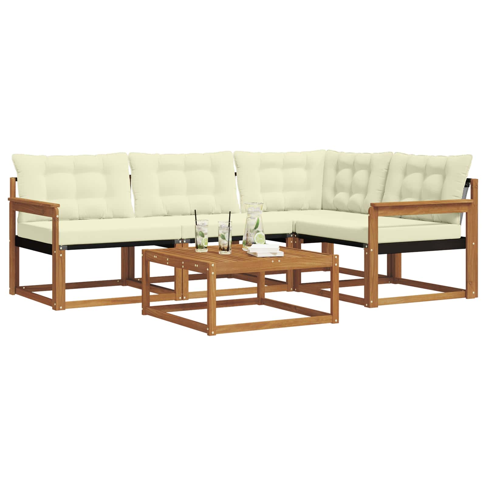 Dieses schicke Sofaset ist die perfekte Ergänzung für deinen Außenbereich, denn es bietet stilvolles Design und gute Funktionalität. Das moderne Design überzeugt mit klaren Linien und einem stabilen Rahmen, der jedem Garten oder jeder Terrasse gerecht wird. Ob für Feste oder entspannte Momente – du profitierst von bequemen Sitzen und einem schönen Blickfang. Massivholz Akazienrahmen: Das Sofaset hat einen stabilen Rahmen aus massivem Akazienholz, das für Robustheit und natürliche Schönheit steht. Der warme Farbton wirkt einladend und sorgt für Langlebigkeit im Alltag. Textilene Komfort: Die Kissen und Rückenlehnen aus Textilene bieten atmungsaktiven Komfort und sind gegen Verblassen sowie Abnutzung beständig. Diese kluge Materialwahl sorgt für besten Sitzkomfort und ein frisches Aussehen – ideal für Outdoor-Spaß. Modulare Flexibilität: Das modulare Design des Sofas macht es leicht, verschiedene Sitzkonfigurationen zu wählen. Du kannst die Teile umstellen, um die perfekte Anordnung für Veranstaltungen zu schaffen, egal ob für kleine oder große Gruppen. Wetterfeste Komponenten: Mit wetterbeständigen Kissen und Materialien für den Außenbereich widersteht dieses Set Feuchtigkeit und UV-Strahlen, sodass die Farben über die Zeit leuchtend bleiben. Jedes Element ist darauf ausgelegt, den Witterungseinflüssen standzuhalten. Einfache Pflege: Es braucht kaum Pflege und kann problemlos mit einem feuchten Tuch gereinigt werden, um sein attraktives Aussehen zu erhalten. Damit hast du einen stets einladenden Platz zum Sitzen.