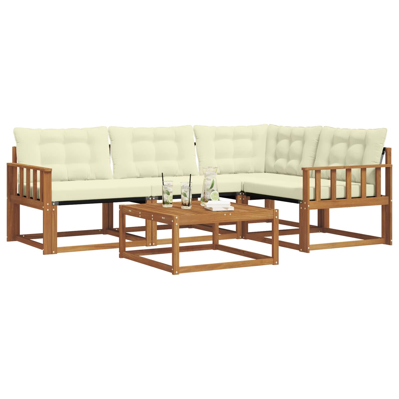 Dieses schicke Sofaset ist die perfekte Ergänzung für deinen Außenbereich, denn es bietet stilvolles Design und gute Funktionalität. Das moderne Design überzeugt mit klaren Linien und einem stabilen Rahmen, der jedem Garten oder jeder Terrasse gerecht wird. Ob für Feste oder entspannte Momente – du profitierst von bequemen Sitzen und einem schönen Blickfang. Massivholz Akazienrahmen: Das Sofaset hat einen stabilen Rahmen aus massivem Akazienholz, das für Robustheit und natürliche Schönheit steht. Der warme Farbton wirkt einladend und sorgt für Langlebigkeit im Alltag. Textilene Komfort: Die Kissen und Rückenlehnen aus Textilene bieten atmungsaktiven Komfort und sind gegen Verblassen sowie Abnutzung beständig. Diese kluge Materialwahl sorgt für besten Sitzkomfort und ein frisches Aussehen – ideal für Outdoor-Spaß. Modulare Flexibilität: Das modulare Design des Sofas macht es leicht, verschiedene Sitzkonfigurationen zu wählen. Du kannst die Teile umstellen, um die perfekte Anordnung für Veranstaltungen zu schaffen, egal ob für kleine oder große Gruppen. Wetterfeste Komponenten: Mit wetterbeständigen Kissen und Materialien für den Außenbereich widersteht dieses Set Feuchtigkeit und UV-Strahlen, sodass die Farben über die Zeit leuchtend bleiben. Jedes Element ist darauf ausgelegt, den Witterungseinflüssen standzuhalten. Einfache Pflege: Es braucht kaum Pflege und kann problemlos mit einem feuchten Tuch gereinigt werden, um sein attraktives Aussehen zu erhalten. Damit hast du einen stets einladenden Platz zum Sitzen.