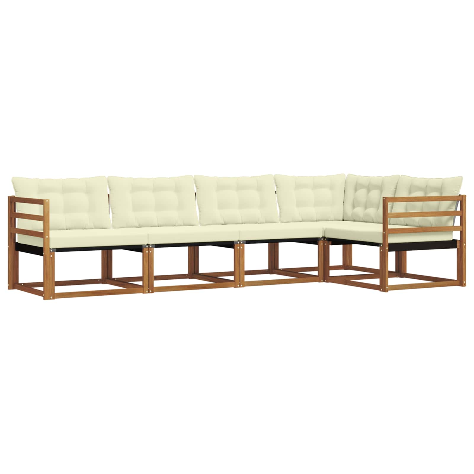 Dieses moderne Sofa-Set bringt Entspannung nach draußen mit seinem schicken Design und dem unvergleichlichen Komfort. Es passt perfekt in Garten und auf die Terrasse und setzt mit seinen klaren Linien und der schönen Holzmaserung Akzente. Egal ob für Partys oder ruhige Abende – die Kombination aus hochwertigen Materialien und Handwerkskunst gibt dir sowohl Langlebigkeit als auch schönen Look. Hochwertige Materialien: Hergestellt aus massivem Akazienholz, strahlt dieses Sofa-Set natürliche Eleganz aus und bietet Robustheit. Der Textilene-Stoff, der über die Rahmen gespannt ist, sorgt für Flexibilität und Anpassungsfähigkeit. Diese Materialien halten den Outdoor-Anforderungen stand und garantieren Langlebigkeit bei gleichzeitig toller Optik. Modul-Funktionen: Jedes Modul kommt mit einer komfortablen Rückenlehne, die super gemütlich ist. Die massiven Armlehnen zeigen eine schöne Holzmaserung und verleihen zusätzlich strukturelle Stabilität. Außerdem helfen die dicken, bequemen Kissen, die du bei Bedarf ganz einfach abnehmen kannst, für ultimativen Komfort. Funktionalität: Das modulare Design ermöglicht es dir, die Sitzanordnungen ganz nach Belieben zu verändern. Das fadebeständige Material sorgt dafür, dass die Farbe selbst bei viel Sonne lebendig bleibt. Diese funktionalen Details, wie leicht zu reinigende Oberflächen, machen die Pflege kinderleicht. Verwendungszwecke: Ideal für draußen, perfekt für Gartenpartys, auf der Terrasse oder für lockere Treffen. Es passt sich einfach verschiedenen Sitzbedürfnissen an – ob du deine Grill-Gäste unterbringst oder dich einfach nur zurückziehst und ein ruhiges Buch im Sommer liest. Pflegetipps: Halte das Sofa-Set frisch, indem du die Oberflächen mit einem feuchten Tuch abwischst. Bei regelmäßiger Pflege und umgehender Entfernung von Schmutz bleibt das Stück langlebig und sieht immer gut aus – so wird es ein fester Teil deines gemütlichen Außenbereichs.