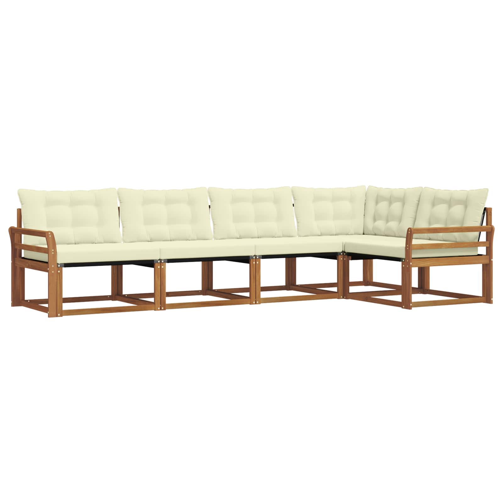 Dieses moderne Sofa-Set bringt Entspannung nach draußen mit seinem schicken Design und dem unvergleichlichen Komfort. Es passt perfekt in Garten und auf die Terrasse und setzt mit seinen klaren Linien und der schönen Holzmaserung Akzente. Egal ob für Partys oder ruhige Abende – die Kombination aus hochwertigen Materialien und Handwerkskunst gibt dir sowohl Langlebigkeit als auch schönen Look. Hochwertige Materialien: Hergestellt aus massivem Akazienholz, strahlt dieses Sofa-Set natürliche Eleganz aus und bietet Robustheit. Der Textilene-Stoff, der über die Rahmen gespannt ist, sorgt für Flexibilität und Anpassungsfähigkeit. Diese Materialien halten den Outdoor-Anforderungen stand und garantieren Langlebigkeit bei gleichzeitig toller Optik. Modul-Funktionen: Jedes Modul kommt mit einer komfortablen Rückenlehne, die super gemütlich ist. Die massiven Armlehnen zeigen eine schöne Holzmaserung und verleihen zusätzlich strukturelle Stabilität. Außerdem helfen die dicken, bequemen Kissen, die du bei Bedarf ganz einfach abnehmen kannst, für ultimativen Komfort. Funktionalität: Das modulare Design ermöglicht es dir, die Sitzanordnungen ganz nach Belieben zu verändern. Das fadebeständige Material sorgt dafür, dass die Farbe selbst bei viel Sonne lebendig bleibt. Diese funktionalen Details, wie leicht zu reinigende Oberflächen, machen die Pflege kinderleicht. Verwendungszwecke: Ideal für draußen, perfekt für Gartenpartys, auf der Terrasse oder für lockere Treffen. Es passt sich einfach verschiedenen Sitzbedürfnissen an – ob du deine Grill-Gäste unterbringst oder dich einfach nur zurückziehst und ein ruhiges Buch im Sommer liest. Pflegetipps: Halte das Sofa-Set frisch, indem du die Oberflächen mit einem feuchten Tuch abwischst. Bei regelmäßiger Pflege und umgehender Entfernung von Schmutz bleibt das Stück langlebig und sieht immer gut aus – so wird es ein fester Teil deines gemütlichen Außenbereichs.
