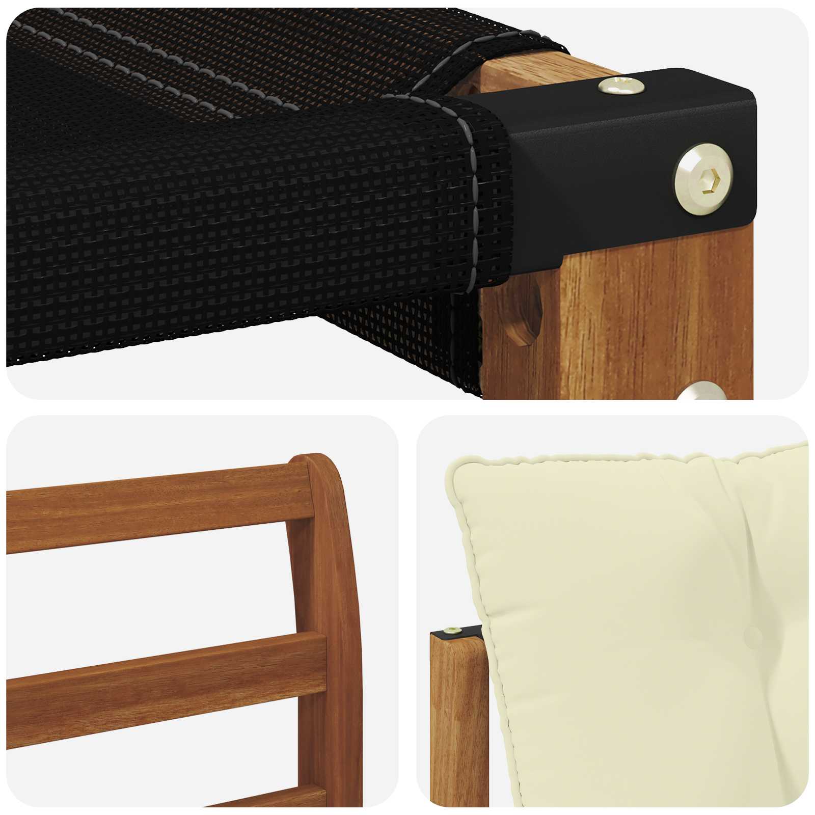 - Material: Massives Akazienholz und Textilene