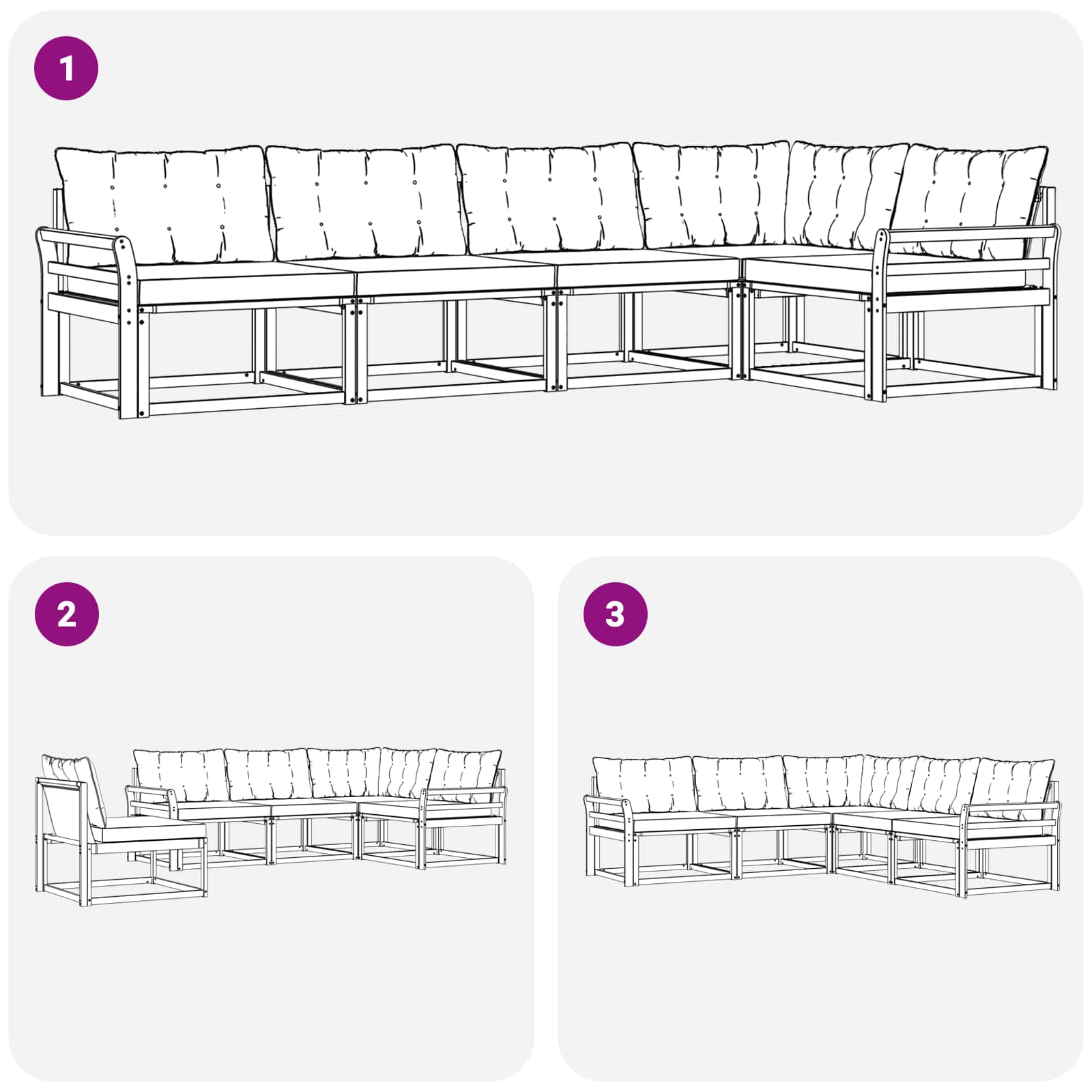- 6 x Rückenkissen: 80 x 43 x 10 cm (LxBxH)