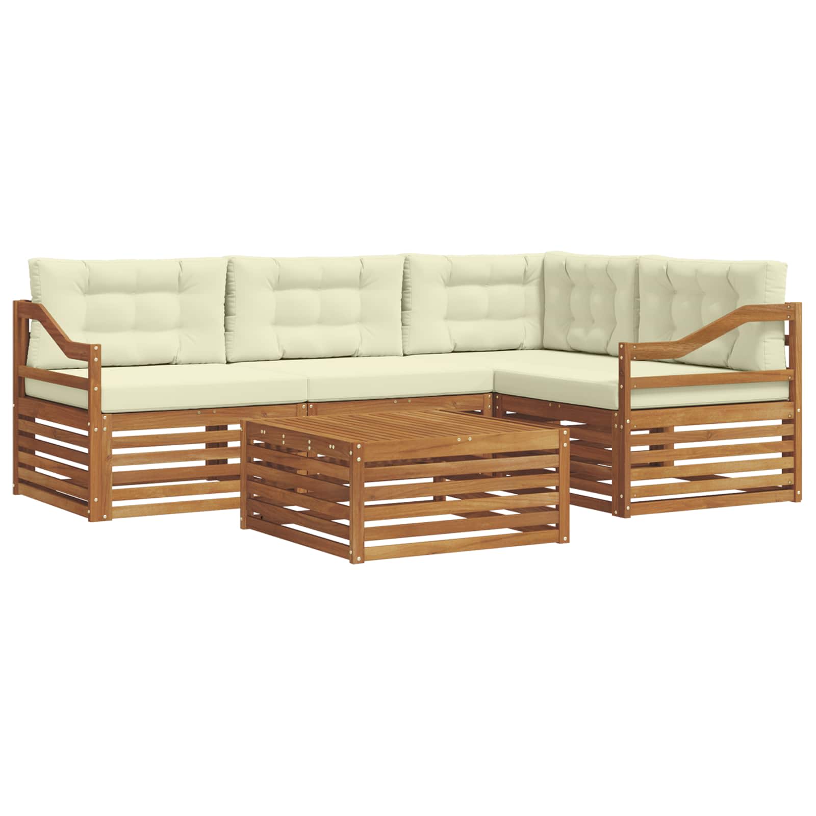Das Outdoor-Möbelset bringt Style und Nutzen zusammen und ist der Blickfang für jeden Garten oder jede Terrasse. Das moderne Design mit klaren Linien und schlichten Details sorgt für Eleganz und unterstützt entspannte Momente im Freien sowie gesellige Treffen. Vollständig aus solidem Akazienholz gefertigt, bietet das Set nicht nur Langlebigkeit, sondern sieht auch lange gut aus, was es zur idealen Wahl für alle macht, die stylische und praktische Outdoor-Möbel suchen. Langlebiges Akazienholz: Hergestellt aus solidem Akazienholz, ist dieses Outdoor-Möbelset bekannt für seine Robustheit und Wetterfestigkeit. Die stabile Konstruktion sorgt für zuverlässige Unterstützung und bleibt lange stabil, während der warme Farbton jeden Garten oder jede Terrasse aufwertet. Wetterfestes Design: Das Outdoor-Möbelset hat eine lackierte Oberfläche, die zusätzlichen Schutz gegen Sonne, leichten Regen und andere Witterungseinflüsse bietet. Das polierte Finish hilft, sowohl Aussehen als auch Funktionalität zu erhalten und sorgt dafür, dass es lange hält, ob im Garten, auf der Terrasse oder im Hinterhof. Design und Komponenten: Jedes Stück, von den Armlehnen bis zu den Rückenlehnen, vereint Style und Funktion. Unterstützende Merkmale erhöhen den Komfort, während das harmonische Design für eine optisch ansprechende Anordnung sorgt, die für verschiedene Outdoor-Events geeignet ist. Komfort & Vielseitigkeit: Mit modularem Design erreichst du flexible Konfigurationen, die auf unterschiedliche Räume und Bedürfnisse abgestimmt sind. Ideal für Entspannung, gesellige Treffen oder ruhige Lesezeiten passt sich dieses Set ganz easy an jede Außenumgebung an und maximiert Komfort und Nutzerfreundlichkeit. Einfache Pflege: Um die Möbel in gutem Zustand zu halten, wisch einfach die Oberfläche mit einem feuchten Tuch ab und vermeide aggressive Reinigungsmittel. Regelmäßige Pflege nutzt den Möbeln und verlängert deren Lebensdauer.