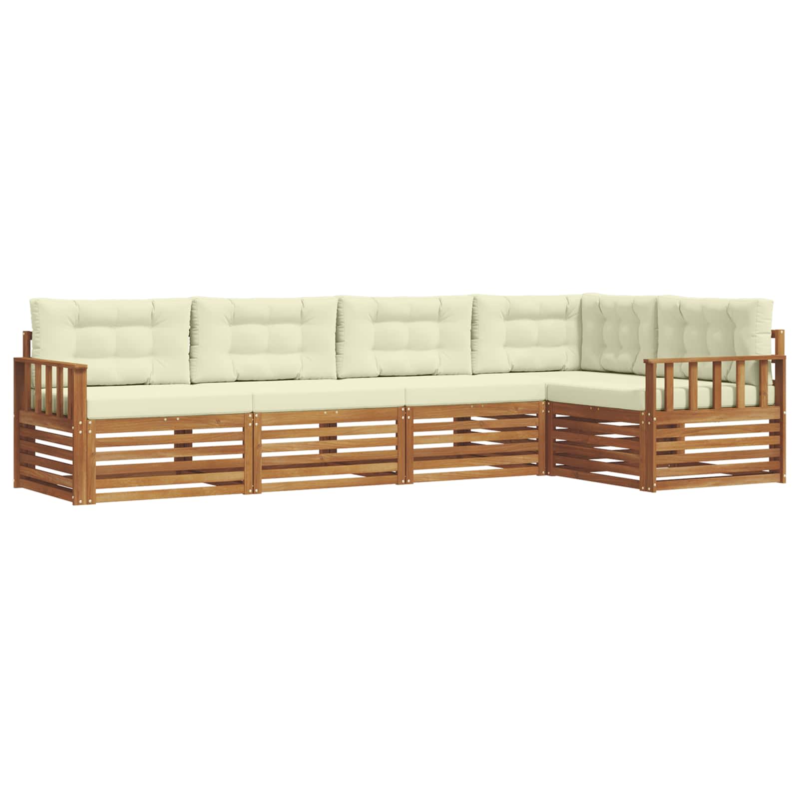 Das Outdoor-Möbelset vereint Stil und Funktion und wird zum Hingucker in deinem Garten oder auf der Terrasse. Das moderne Design mit klaren Linien sorgt für Eleganz und lädt ein, draußen zu entspannen und die Gesellschaft zu genießen. Voll aus massivem Akazienholz gefertigt, bietet das Set Langlebigkeit und macht es zur perfekten Wahl für alle, die praktische und stylische Möbel für draußen suchen. Langlebiges Massivholz Akazie: Aus massivem Akazienholz gefertigt, ist dieses Outdoor-Möbelset für seine Langlebigkeit und Wetterbeständigkeit bekannt. Die robuste Bauweise bietet zuverlässigen Halt und lange Stabilität, während der warme Holzton deinen Garten oder deine Terrasse aufwertet. Wetterbeständiges Design: Mit seiner lackierten Oberfläche bietet das Set zusätzlichen Schutz gegen Sonne, leichten Regen und andere Wettereinflüsse. Der glänzende Finish trägt dazu bei, das Aussehen und die Funktionalität zu erhalten, sodass es ideal für Garten, Terrasse oder Hinterhof bleibt. Komponenten & Design: Jedes Teil, von den Armen bis zu den Rückenlehnen, ist sowohl stilvoll als auch funktional gestaltet. Die Unterstützung sorgt für zusätzlichen Komfort, und das harmonische Design schafft ein tolles Ensemble für verschiedene Outdoor-Anlässe. Komfort & Vielseitigkeit: Das modulare Design erlaubt flexible Konfigurationen und passt sich unterschiedlichen Räumen und Bedürfnissen an. Egal ob für Entspannung, gesellige Zusammenkünfte oder ruhige Lese-Momente, dieses Set passt sich mühelos jeder Umgebung an und maximiert Komfort. Einfache Pflege & Wartung: Halte die Möbel in Top-Zustand, indem du die Oberfläche mit einem feuchten Tuch abwischst und scharfe oder abrasive Reinigungsmittel vermeidest. Regelmäßige Pflege hilft, ihr Aussehen zu bewahren und die Lebensdauer der Möbel zu verlängern.
