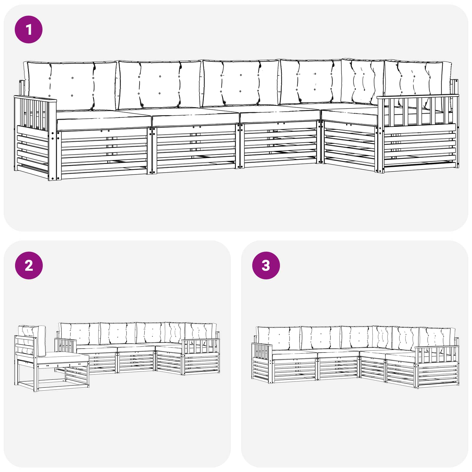 - 5 x Sitzkissen: 80 x 80 x 8 cm (LxBxH)