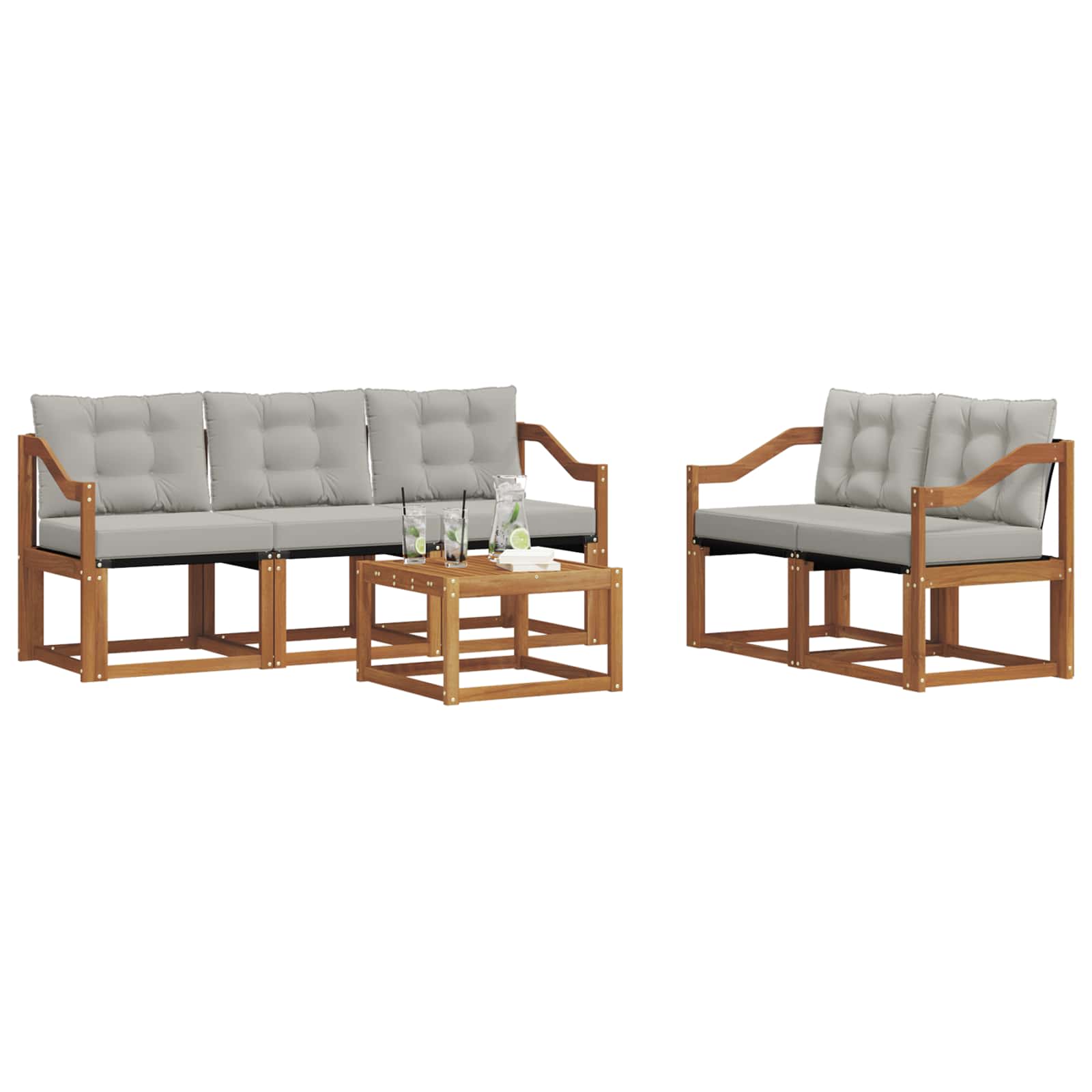 Das Gartenmöbelset hat Stil und Praktikabilität und ist das Mittelpunktstück für jeden Garten oder Terrasse. Sein modernes, klares Design strahlt Eleganz aus und schafft eine entspannende Atmosphäre für gesellige Zusammenkünfte im Freien. Es besteht komplett aus massivem Akazienholz, was für Langlebigkeit und schöne Optik sorgt. Perfekt für alle, die praktische und schicke Gartenmöbel wollen. Langlebiges Massivholz Akazie: Hergestellt aus solidem Akazienholz, ist dieses Möbelset bekannt für seine Widerstandsfähigkeit gegenüber allen Wetterbedingungen. Die robuste Bauweise sorgt für Stabilität und der natürliche Farbton wertet jeden Garten oder Terrasse auf. Wetterbeständiges Design: Das Möbelset hat eine spezielle lackierte Fläche, die es vor Sonne, leichtem Regen und anderen Wettereinflüssen schützt. Das polierte Finish hilft, das Aussehen und die Funktionalität zu erhalten und sorgt für Langlebigkeit in deinem Garten, auf der Terrasse oder im Hinterhof. Komponenten & Design: Jedes Teil, von den Armlehnen bis zu den Rückenlehnen, kombiniert Stil und Funktionalität. Zusätzlicher Komfort wird durch clevere Details geboten, während das durchgängige Design für eine harmonische Optik sorgt, die sich für verschiedene Anlässe im Freien eignet. Komfort & Vielseitigkeit: Das modulare Design ermöglicht dir, die Teile flexibel an deine Bedürfnisse und den verfügbaren Platz anzupassen. Perfekt zum Entspannen, für gesellige Runden oder ruhiges Lesen – dieses Set fügt sich nahtlos in jede Außenumgebung ein und maximiert den Komfort. Einfache Pflege & Wartung: Halte die Möbel in Schuss, indem du die Oberfläche regelmäßig mit einem feuchten Tuch abwischst und aggressive Reinigungsmittel vermeidest. Mit der richtigen Pflege bleibt das Set lange schön und erhaltet sich optimal.