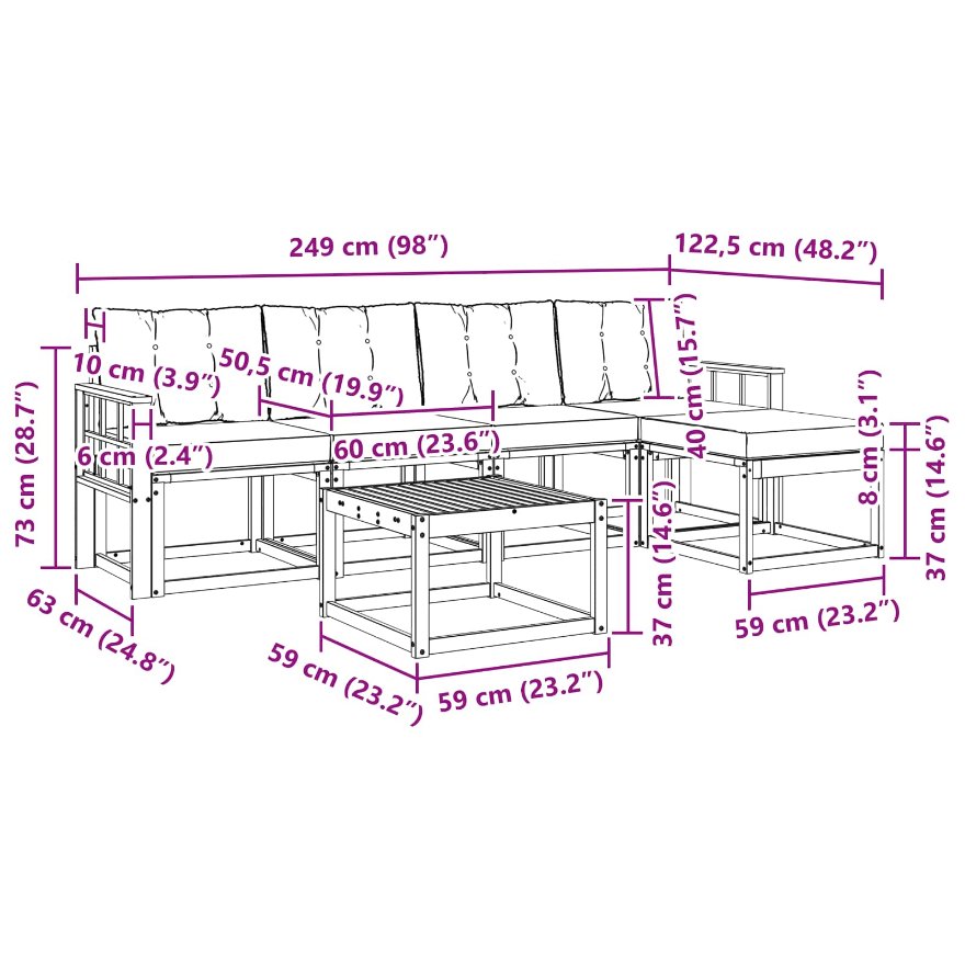 - 4 x Sitzkissen: 60 x 50,5 x 8 cm (LxBxH)