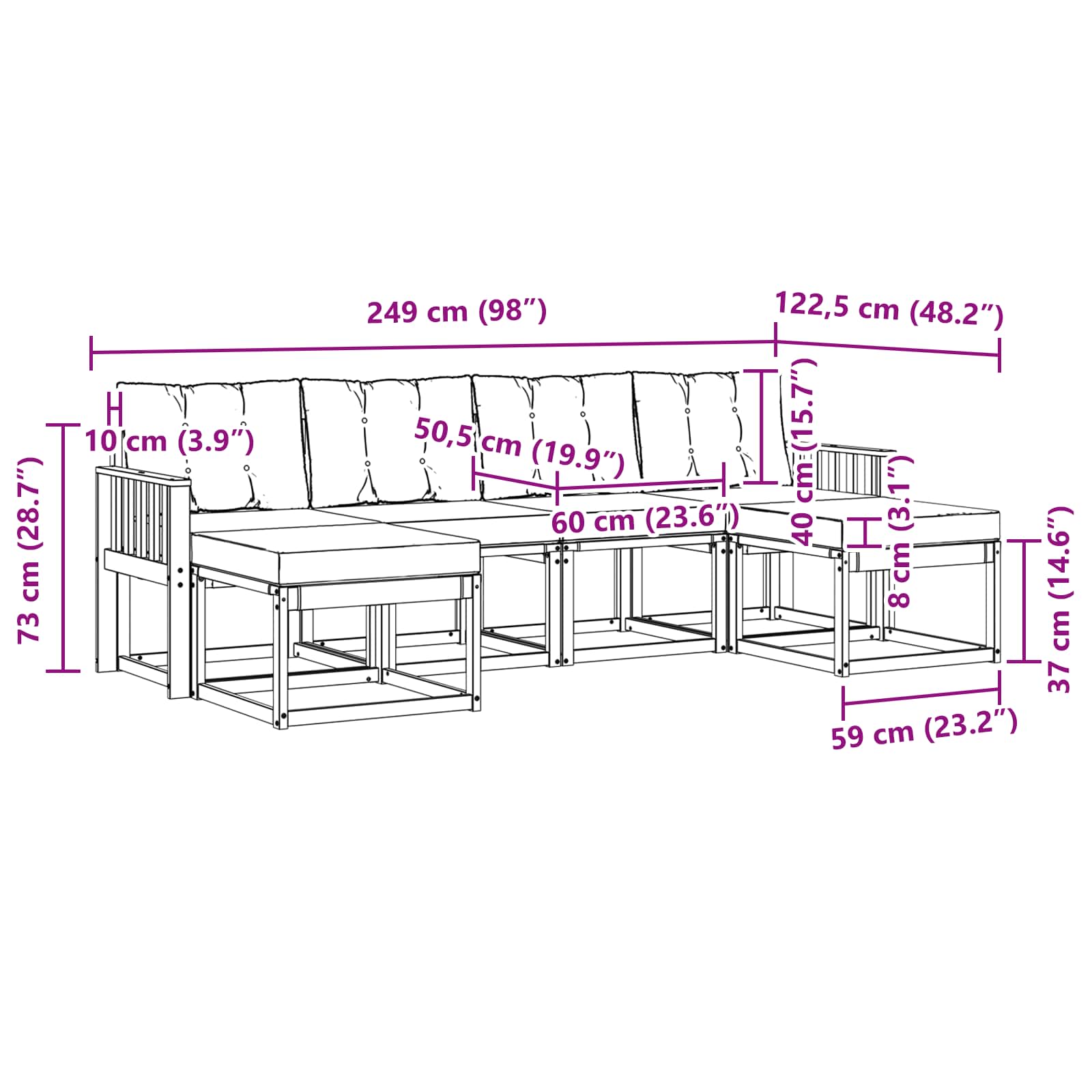 Das Outdoor-Möbelset vereint Stil und Funktionalität und wird zum Hingucker in jedem Garten oder auf der Terrasse. Mit seinem modernen Design, das durch klare Linien besticht, bringt es Eleganz und sorgt für entspannte Outdoor-Momente sowie gesellige Zusammenkünfte. Aus massivem Akazienholz gefertigt, garantiert es Langlebigkeit und ein optisch ansprechendes Aussehen – perfekt für alle, die Praktikabilität und cooles Design bei Gartenmöbeln schätzen. Robustes Massivholz Akazie: Dieses Gartenmöbelset aus solidem Akazienholz ist super langlebig und bestens geeignet für den Außeneinsatz. Es bietet stabile Unterstützung und hält die Farben des Holzes warm und einladend. Wetterfeste Gestaltung: Mit einer lackierten Oberfläche bietet das Set extra Schutz gegen Sonne, leichten Regen und andere Witterungen. So bleibt alles schick und funktional für deinen Garten, deine Terrasse oder deinen Hinterhof. Komponenten & Design: Jedes Detail, von den Armlehnen bis zu den Rückenlehnen, wurde für Stil und Zweck entworfen. Die unterstützenden Features sorgen für zusätzlichen Komfort, während das harmonische Design eine tolle Optik für jedes Outdoor-Event bietet. Komfort & Vielseitigkeit: Das modulare Design erlaubt dir, die Möbel flexibel zu konfigurieren, passend zu deinen Bedürfnissen. Ob zum Entspannen, für gesellige Runden oder ruhige Lese-Momente – dieses Set passt sich ganz leicht jeder Outdoor-Umgebung an und sorgt für maximalen Komfort. Einfache Pflege: Damit die Möbel in Schuss bleiben, reicht es, die Oberfläche mit einem feuchten Tuch abzuwischen. Vermeide starke Reinigungsmittel. Regelmäßige Pflege erhält das Aussehen und verlängert die Lebensdauer der Möbel.