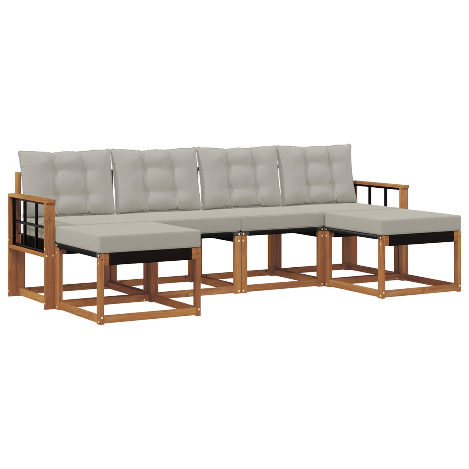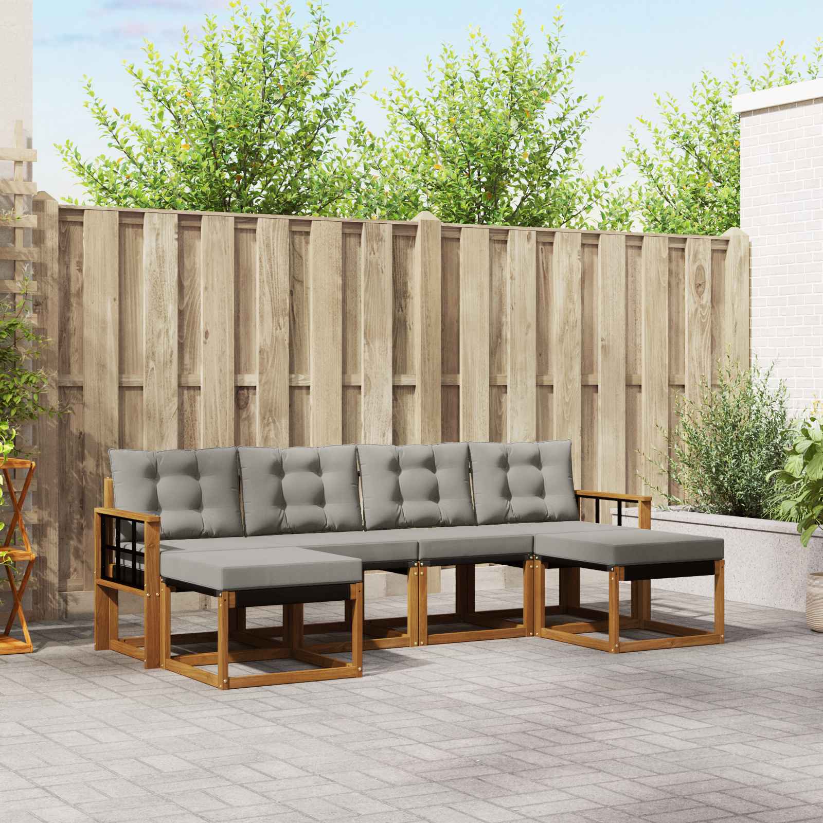 Das Outdoor-Möbelset vereint Stil und Funktionalität und wird zum Hingucker in jedem Garten oder auf der Terrasse. Mit seinem modernen Design, das durch klare Linien besticht, bringt es Eleganz und sorgt für entspannte Outdoor-Momente sowie gesellige Zusammenkünfte. Aus massivem Akazienholz gefertigt, garantiert es Langlebigkeit und ein optisch ansprechendes Aussehen – perfekt für alle, die Praktikabilität und cooles Design bei Gartenmöbeln schätzen. Robustes Massivholz Akazie: Dieses Gartenmöbelset aus solidem Akazienholz ist super langlebig und bestens geeignet für den Außeneinsatz. Es bietet stabile Unterstützung und hält die Farben des Holzes warm und einladend. Wetterfeste Gestaltung: Mit einer lackierten Oberfläche bietet das Set extra Schutz gegen Sonne, leichten Regen und andere Witterungen. So bleibt alles schick und funktional für deinen Garten, deine Terrasse oder deinen Hinterhof. Komponenten & Design: Jedes Detail, von den Armlehnen bis zu den Rückenlehnen, wurde für Stil und Zweck entworfen. Die unterstützenden Features sorgen für zusätzlichen Komfort, während das harmonische Design eine tolle Optik für jedes Outdoor-Event bietet. Komfort & Vielseitigkeit: Das modulare Design erlaubt dir, die Möbel flexibel zu konfigurieren, passend zu deinen Bedürfnissen. Ob zum Entspannen, für gesellige Runden oder ruhige Lese-Momente – dieses Set passt sich ganz leicht jeder Outdoor-Umgebung an und sorgt für maximalen Komfort. Einfache Pflege: Damit die Möbel in Schuss bleiben, reicht es, die Oberfläche mit einem feuchten Tuch abzuwischen. Vermeide starke Reinigungsmittel. Regelmäßige Pflege erhält das Aussehen und verlängert die Lebensdauer der Möbel.