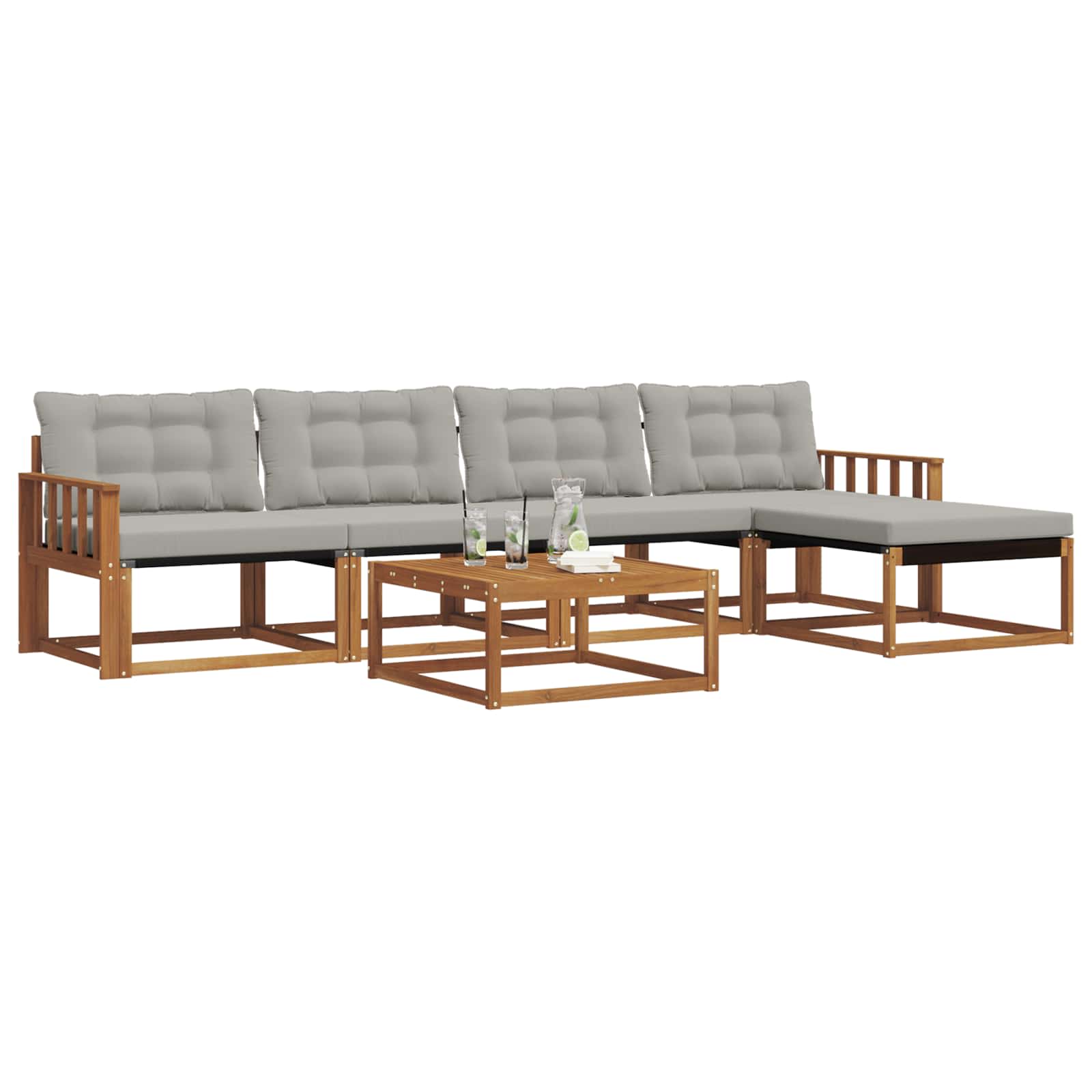 Dieses moderne Sofa-Set wertet deinen Garten oder deine Terrasse echt auf. Es kombiniert minimalistisches Design mit robuster Funktionalität und ist ideal für alle, die die Einfachheit und Eleganz der natürlichen Elemente schätzen. Es ist die perfekte Auszeit im Freien und wurde mit viel Liebe zum Detail entworfen – ideal für gesellige Zusammenkünfte oder ruhige Momente der Reflexion. Hochwertige Materialien: Das Set besteht aus solidem Akazienholz und Textilene und ist langlebig und ästhetisch. Die warmen, natürlichen Holzfarben harmonieren perfekt mit dem eleganten Textilene-Stoff und machen das Sofa-Set zu einem zeitlosen Element in deinem Garten. Enthaltene Komponenten: Bequeme Armlehnen aus solidem Akazienholz sorgen für Komfort und Stil. Im Set sind auch wetterfeste Outdoor-Kissen enthalten, die dick gepolstert sind und ein gemütliches Sitzen ermöglichen. Die unterstützende Rückenlehne trägt zur Entspannung bei. Schlaue Features: Dank des modularen Aufbaus kannst du die Anordnung easy variieren. Die fade-resistente Oberfläche sorgt für eine einfache Pflege und bewahrt die lebendige Optik im Laufe der Zeit. Die praktischen Armlehnen erhöhen den Sitzkomfort. Vielseitige Nutzung: Perfekt geeignet für Terrassen und Gärten. Die großzügige Anordnung bietet viele Nutzungsmöglichkeiten, vom Entspannen allein bis zu geselligen Treffen, und passt sich deinen Bedürfnissen spielend an. Pflege & Wartung: Pflege das Sofa-Set ganz einfach mit ein paar einfachen Schritten – benutze ein feuchtes Tuch zum Saubermachen. Die Kissen sind abnehmbar und mit einem Reißverschluss ausgestattet, was die Pflege erleichtert und für langanhaltende Frische sorgt.