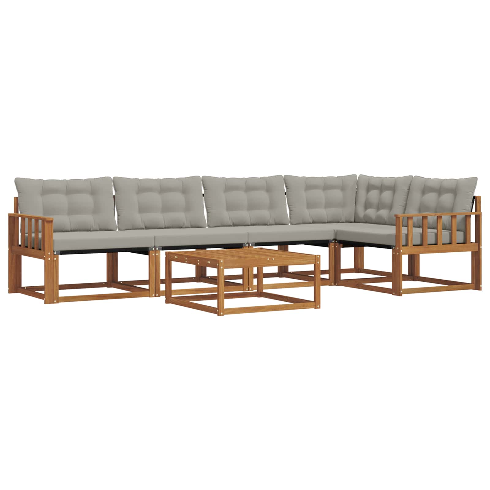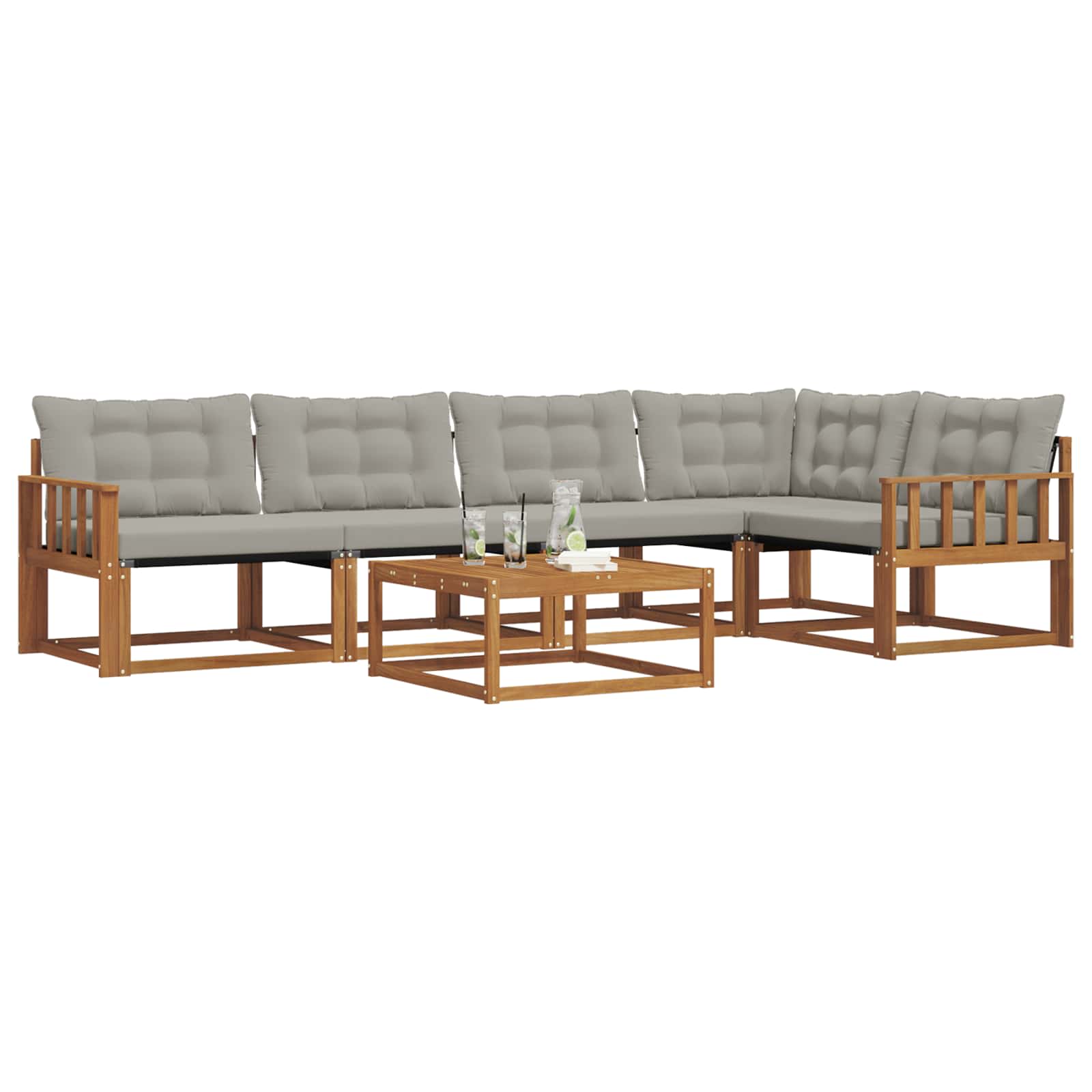 Das Outdoor-Möbelset bringt Stil und Funktionalität und wird zum Blickfang für jeden Garten oder jede Terrasse. Mit seinem modernen Design, das durch klare Linien und einfache Details besticht, lädt es zum Entspannen und zu geselligen Zusammenkünften im Freien ein. Ganz aus massivem Akazienholz gefertigt, sorgt das Set für Langlebigkeit und sieht dabei dauerhaft gut aus. Es ist die ideale Wahl für alle, die praktische Möbel mit coolem Design suchen. Langlebiges Massivholz Akazie: Dieses Outdoor-Möbelset besteht aus massivem Akazienholz, das für seine Haltbarkeit und Wetterfestigkeit bekannt ist. Die stabile Bauweise bietet zuverlässige Unterstützung und langanhaltende Stabilität, während die warme Holzfarbe jeden Garten oder jede Terrasse aufpeppt. Wetterbeständiges Design: Dieses Set hat eine lackierte Oberfläche, die zusätzlichen Schutz gegen Sonne, leichten Regen und andere Wetterbedingungen bereitstellt. Das polierte Finish sorgt dafür, dass das Aussehen und die Funktionalität erhalten bleiben, damit dein Garten, deine Terrasse oder dein Hinterhof lange schön bleibt. Komponenten & Design: Jedes Teil, von den Armlehnen bis zu den Rückenlehnen, ist sowohl stilvoll als auch praktisch gestaltet. Unterstützende Merkmale bringen zusätzlichen Komfort, während das harmonische Design ein stimmiges Ensemble ergibt, das zu verschiedenen Outdoor-Anlässen passt. Komfort & Vielseitigkeit: Das flexible Design erlaubt unterschiedliche Anordnungen, die sich leicht an verschiedene Räume und Bedürfnisse anpassen lassen. Perfekt zum Entspannen, für Feiern oder ruhige Lesestunden, passt sich das Set mühelos jedem Außenbereich an und maximiert Komfort und Benutzerfreundlichkeit. Einfache Pflege & Wartung: Halte die Möbel in gutem Zustand, indem du die Oberfläche mit einem feuchten Tuch abwischst und aggressive Reinigungsmittel vermeidest. Regelmäßiges Putzen hilft, das Aussehen zu bewahren und die Lebensdauer deiner Möbel zu verlängern.