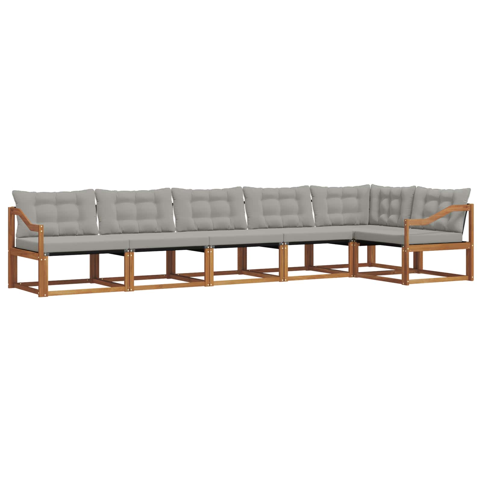 Dieses moderne Sofaset für den Außenbereich vereint Stil und Funktionalität und ist eine coole Bereicherung für deinen Garten oder deine Terrasse. Es ist aus massivem Akazienholz und Textilene gefertigt, was einen modernen Charme versprüht und gleichzeitig bequem ist. Ideal für gesellige Treffen, bietet dieses Sofaset genug Platz für die Familie und Freunde und sorgt so für unvergessliche Momente bei jeder Outdoor-Party. Massivholz Akazie: Die robuste Bauweise aus Akazienholz ist stylish und hält jede Wetterlage aus. Dieses Material sorgt dafür, dass das Set lange hält und immer gut aussieht, egal ob bei Regen oder Sonne. Wetterbeständiges Kissen: Die Kissen aus wetterfestem Stoff sind bequem und dauern lange. Die integrierte Schaumfüllung macht das Sitzen total angenehm, perfekt für entspannte Nachmittage in der Sonne. Unterstützendes Design: Mit der bequemen Rückenlehne und den praktischen Armlehnen wird das Sitzen noch angenehmer. Ideal für gesellige Abende oder einfach zum Relaxen, dieses Set lädt ein, sich zu entspannen. Modulare Anordnung: Das modulare Design macht es möglich, das Sofaset flexibel zu konfigurieren. Es passt sich leicht an verschiedene Räume und Veranstaltungen an, perfekt für deine Terrasse und jeden Anlass, wenn viele Gäste kommen. Einfache Pflege: Dieses Set ist pflegeleicht, die Oberflächen sind abwischbar und die Kissen haben einen Reißverschluss zum leichten Abnehmen, was die Reinigung kinderleicht macht.