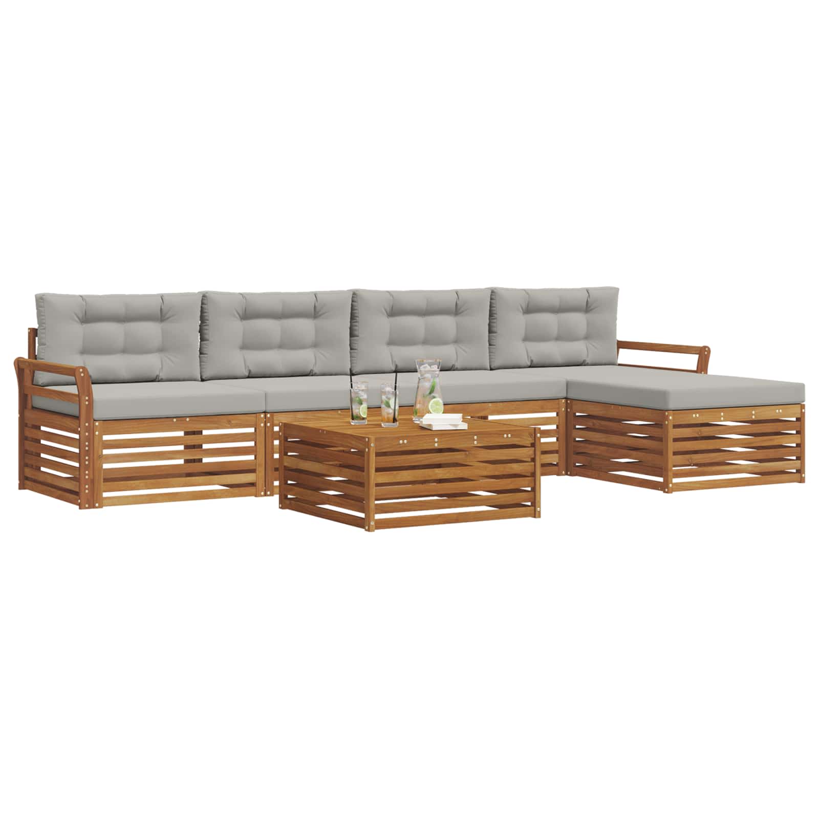 Das Outdoor-Möbelset kombiniert Stil und Funktion mit einem echten Hingucker für deinen Garten oder deine Terrasse. Das moderne Design mit klaren Linien und wenig Schnickschnack verleiht eine elegante Note, die besten für entspannte Stunden draußen und gesellige Runden geeignet ist. Aus massivem Akazienholz gefertigt, ist das Set stabil und sieht auch nach längerer Zeit noch toll aus, was es zur perfekten Wahl macht, wenn du schöne und praktische Gartenmöbel suchst. Langlebiges Massivholz Akazie: Das Outdoor-Möbelset aus massivem Akazienholz ist bekannt für seine Haltbarkeit und Widerstandsfähigkeit gegen Wetter. Die stabile Bauweise sorgt für sicheren Halt und langfristige Stabilität, während die warmen, natürlichen Töne jeden Garten oder jede Terrasse aufwerten. Wetterfeste Konstruktion: Dieses Möbelset hat eine lackierte Oberfläche, die zusätzlichen Schutz gegen Sonne, leichten Regen und andere Witterungseinflüsse bietet. Die glatte Oberfläche hilft, das Aussehen und die Funktionalität zu bewahren und sorgt dafür, dass es lange in deinem Garten oder auf deiner Terrasse hält. Schickes Design: Jedes Stück, von den Armlehnen bis zu den Rücklehnen, ist stylish und funktional gestaltet. Unterstützende Features bieten zusätzlichen Komfort, während das harmonische Design ein optisch ansprechendes Ensemble kreiert, das für verschiedene Outdoor-Anlässe ideal ist. Komfort & Vielseitigkeit: Das modulare Design erlaubt dir flexible Konfigurationen, die sich deinen Bedürfnissen anpassen. Ob zum Entspannen, geselligem Beisammensein oder stillen Lesen, dieses Set fügt sich mühelos in jede Outdoor-Umgebung ein und sorgt für maximalen Komfort. Einfache Pflege: Halte die Möbel in gutem Zustand, indem du die Oberfläche mit einem feuchten Tuch abwischt. Vermeide aggressive oder scheuernde Reiniger. Regelmäßige Pflege hilft, das Aussehen zu erhalten und die Lebensdauer der Möbel zu verlängern.