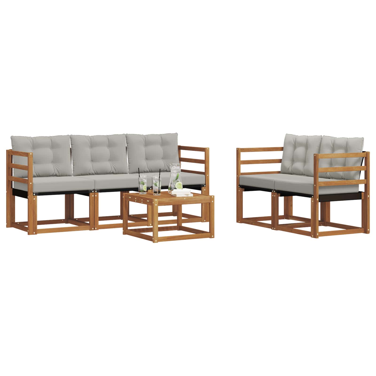 Das Gartenmöbelset hat Stil und Praktikabilität und ist das Mittelpunktstück für jeden Garten oder Terrasse. Sein modernes, klares Design strahlt Eleganz aus und schafft eine entspannende Atmosphäre für gesellige Zusammenkünfte im Freien. Es besteht komplett aus massivem Akazienholz, was für Langlebigkeit und schöne Optik sorgt. Perfekt für alle, die praktische und schicke Gartenmöbel wollen. Langlebiges Massivholz Akazie: Hergestellt aus solidem Akazienholz, ist dieses Möbelset bekannt für seine Widerstandsfähigkeit gegenüber allen Wetterbedingungen. Die robuste Bauweise sorgt für Stabilität und der natürliche Farbton wertet jeden Garten oder Terrasse auf. Wetterbeständiges Design: Das Möbelset hat eine spezielle lackierte Fläche, die es vor Sonne, leichtem Regen und anderen Wettereinflüssen schützt. Das polierte Finish hilft, das Aussehen und die Funktionalität zu erhalten und sorgt für Langlebigkeit in deinem Garten, auf der Terrasse oder im Hinterhof. Komponenten & Design: Jedes Teil, von den Armlehnen bis zu den Rückenlehnen, kombiniert Stil und Funktionalität. Zusätzlicher Komfort wird durch clevere Details geboten, während das durchgängige Design für eine harmonische Optik sorgt, die sich für verschiedene Anlässe im Freien eignet. Komfort & Vielseitigkeit: Das modulare Design ermöglicht dir, die Teile flexibel an deine Bedürfnisse und den verfügbaren Platz anzupassen. Perfekt zum Entspannen, für gesellige Runden oder ruhiges Lesen – dieses Set fügt sich nahtlos in jede Außenumgebung ein und maximiert den Komfort. Einfache Pflege & Wartung: Halte die Möbel in Schuss, indem du die Oberfläche regelmäßig mit einem feuchten Tuch abwischst und aggressive Reinigungsmittel vermeidest. Mit der richtigen Pflege bleibt das Set lange schön und erhaltet sich optimal.