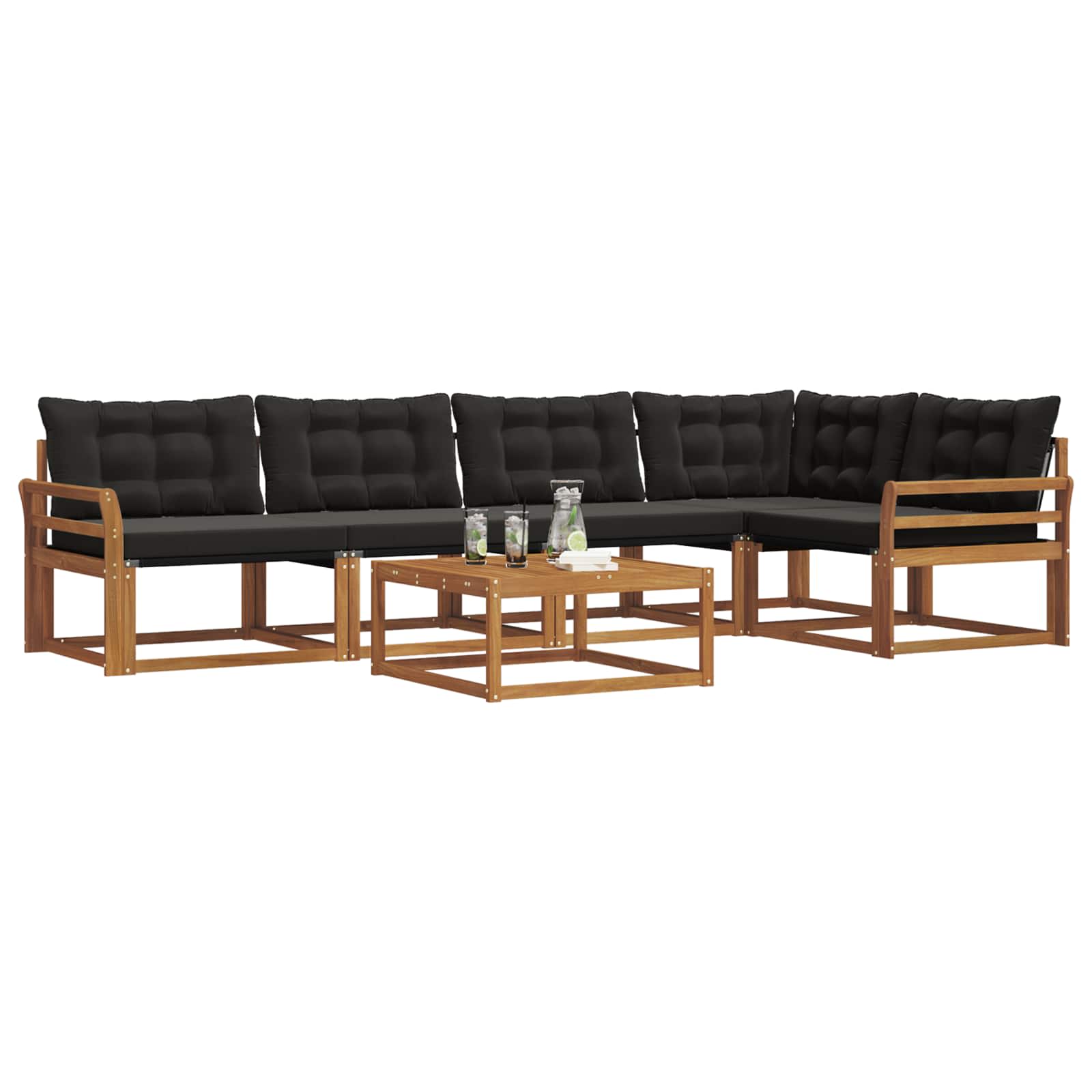 Das Outdoor-Möbelset bringt Stil und Funktionalität und wird zum Blickfang für jeden Garten oder jede Terrasse. Mit seinem modernen Design, das durch klare Linien und einfache Details besticht, lädt es zum Entspannen und zu geselligen Zusammenkünften im Freien ein. Ganz aus massivem Akazienholz gefertigt, sorgt das Set für Langlebigkeit und sieht dabei dauerhaft gut aus. Es ist die ideale Wahl für alle, die praktische Möbel mit coolem Design suchen. Langlebiges Massivholz Akazie: Dieses Outdoor-Möbelset besteht aus massivem Akazienholz, das für seine Haltbarkeit und Wetterfestigkeit bekannt ist. Die stabile Bauweise bietet zuverlässige Unterstützung und langanhaltende Stabilität, während die warme Holzfarbe jeden Garten oder jede Terrasse aufpeppt. Wetterbeständiges Design: Dieses Set hat eine lackierte Oberfläche, die zusätzlichen Schutz gegen Sonne, leichten Regen und andere Wetterbedingungen bereitstellt. Das polierte Finish sorgt dafür, dass das Aussehen und die Funktionalität erhalten bleiben, damit dein Garten, deine Terrasse oder dein Hinterhof lange schön bleibt. Komponenten & Design: Jedes Teil, von den Armlehnen bis zu den Rückenlehnen, ist sowohl stilvoll als auch praktisch gestaltet. Unterstützende Merkmale bringen zusätzlichen Komfort, während das harmonische Design ein stimmiges Ensemble ergibt, das zu verschiedenen Outdoor-Anlässen passt. Komfort & Vielseitigkeit: Das flexible Design erlaubt unterschiedliche Anordnungen, die sich leicht an verschiedene Räume und Bedürfnisse anpassen lassen. Perfekt zum Entspannen, für Feiern oder ruhige Lesestunden, passt sich das Set mühelos jedem Außenbereich an und maximiert Komfort und Benutzerfreundlichkeit. Einfache Pflege & Wartung: Halte die Möbel in gutem Zustand, indem du die Oberfläche mit einem feuchten Tuch abwischst und aggressive Reinigungsmittel vermeidest. Regelmäßiges Putzen hilft, das Aussehen zu bewahren und die Lebensdauer deiner Möbel zu verlängern.
