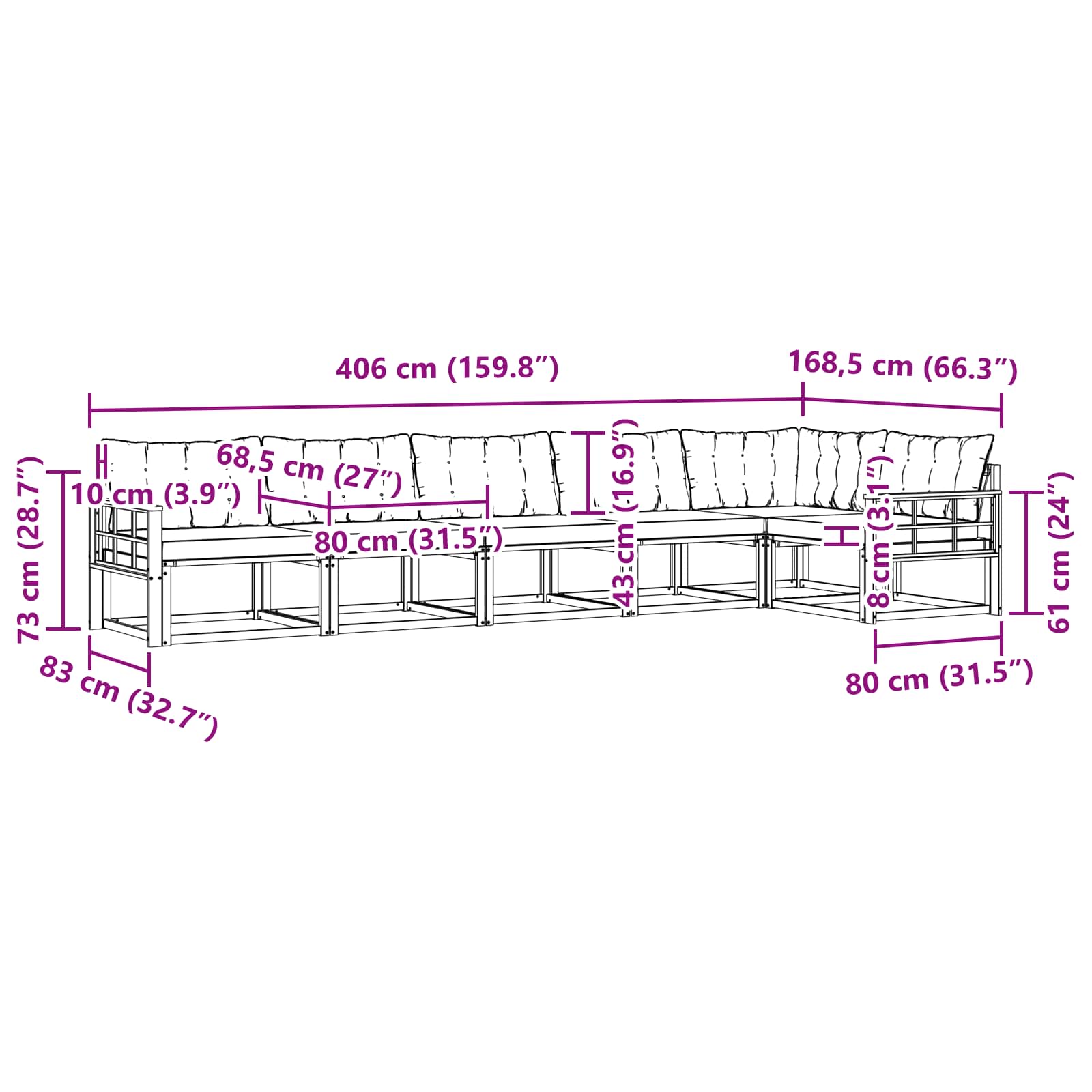 - 5 x Sitzkissen: 80 x 68,5 x 8 cm (LxBxH)
