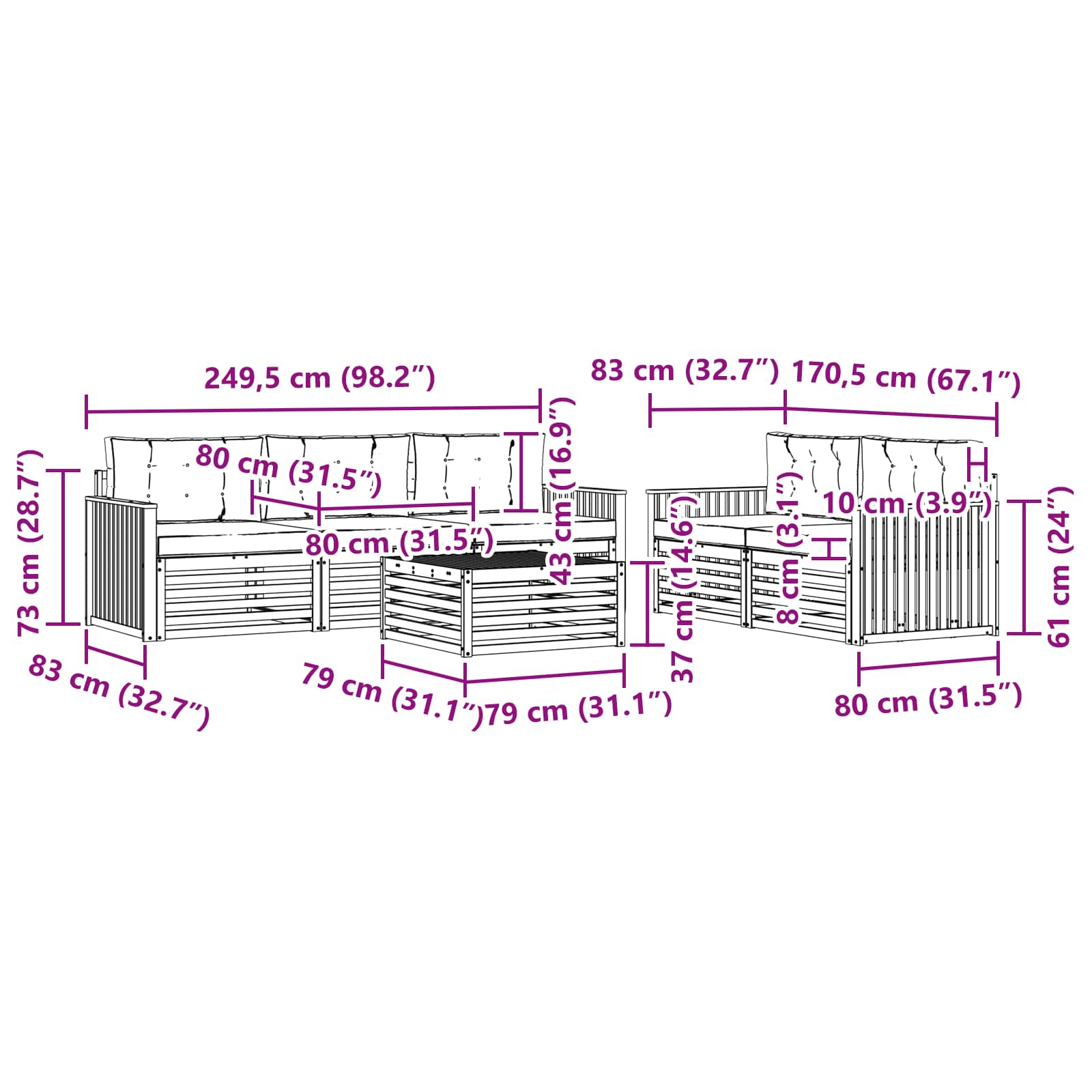 Das Gartenmöbel-Set verbindet coolen Style mit praktischer Funktionalität und wird zum echten Hingucker in jedem Garten oder auf jeder Terrasse. Das moderne Design mit klaren Linien und wenigen Details strahlt Eleganz aus und lädt zum Entspannen im Freien oder zu geselligen Runden ein. Hergestellt aus massivem Akazienholz, sorgt das Set für Langlebigkeit und sieht dabei auch noch gut aus – die perfekte Wahl für alle, die praktische und stylische Gartenmöbel wollen. Massives Akazienholz: Dieses Gartenmöbel-Set ist aus solidem Akazienholz gemacht und bekannt für seine Robustheit und Wetterbeständigkeit. Die stabile Bauweise gibt dir verlässliche Unterstützung und langanhaltende Stabilität, während der warme, natürliche Farbton jeden Garten oder jede Terrasse verschönert. Wetterfestes Design: Mit einer lackierten Oberfläche bietet dieses Möbelset extra Schutz gegen Sonne, leichten Regen und andere Witterungen. Die polierte Behandlung sorgt dafür, dass das Set toll aussieht und lange hält, egal ob im Garten, auf der Terrasse oder im Hinterhof. Design & Komponenten: Jedes Stück, von den Armlehnen bis zu den Rückenlehnen, wurde für Style und Funktionalität konzipiert. Praktische Features sorgen für zusätzlichen Komfort und das Design sieht einfach toll aus für verschiedene Außenanlässe. Komfort & Flexibilität: Das modulare Design erlaubt dir, die Anordnung flexibel zu ändern, damit es zu deinen Bedürfnissen passt. Perfekt zum Entspannen, für gesellige Treffen oder ruhige Lesestunden – das Set passt sich deinem Außenbereich an und bietet maximalen Komfort. Einfache Pflege: Halte die Möbel in gutem Zustand, indem du die Oberflächen mit einem feuchten Tuch abwischst und scharfe Reiniger vermeidest. Einfache Pflege trägt dazu bei, das Aussehen zu bewahren und die Lebensdauer deiner Möbel zu verlängern.