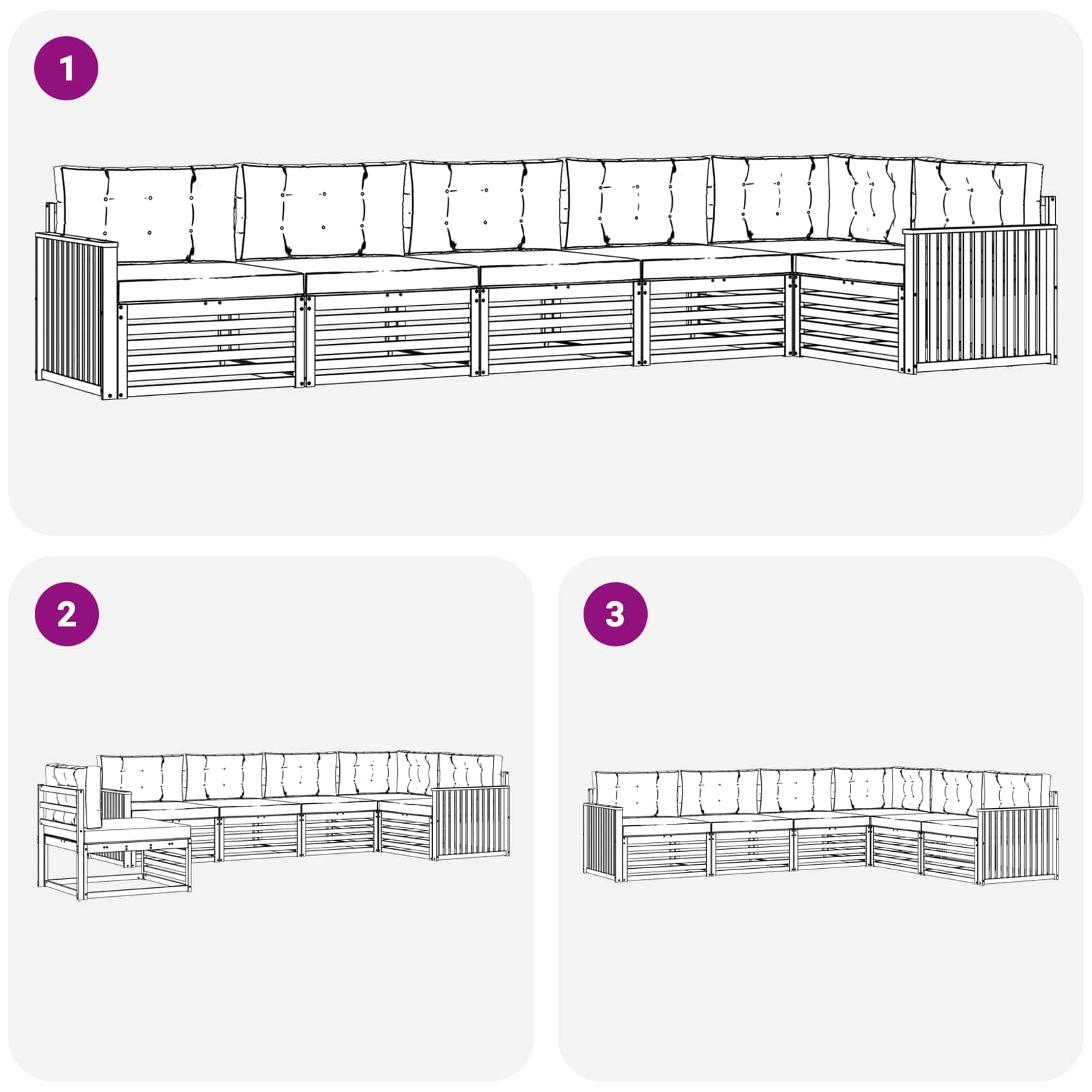 - 7 x Rückenpolster: 80 x 43 x 10 cm (LxBxH)
