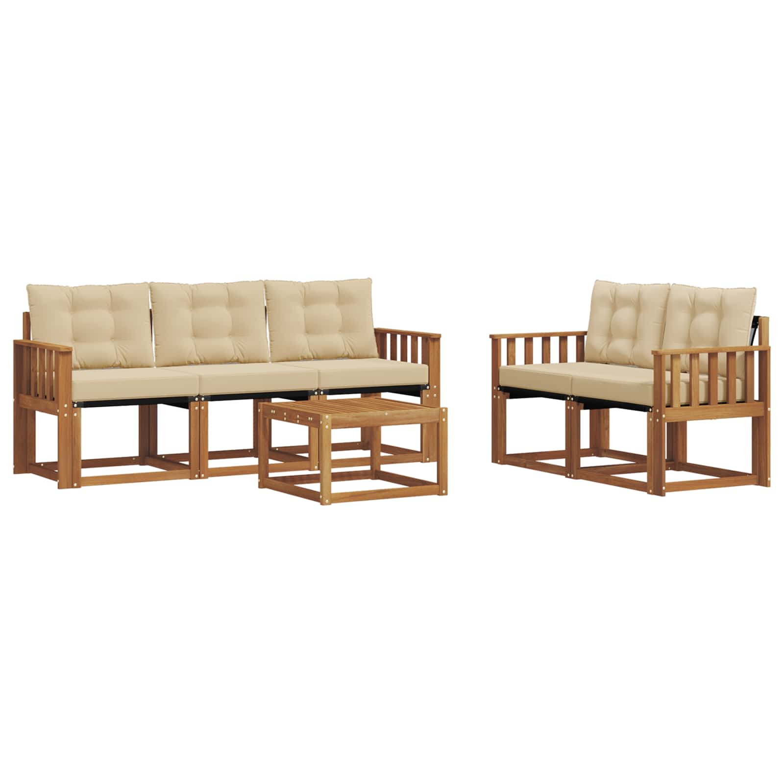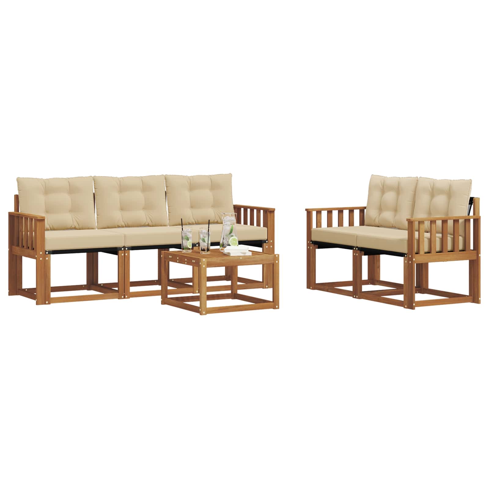 Das Gartenmöbelset hat Stil und Praktikabilität und ist das Mittelpunktstück für jeden Garten oder Terrasse. Sein modernes, klares Design strahlt Eleganz aus und schafft eine entspannende Atmosphäre für gesellige Zusammenkünfte im Freien. Es besteht komplett aus massivem Akazienholz, was für Langlebigkeit und schöne Optik sorgt. Perfekt für alle, die praktische und schicke Gartenmöbel wollen. Langlebiges Massivholz Akazie: Hergestellt aus solidem Akazienholz, ist dieses Möbelset bekannt für seine Widerstandsfähigkeit gegenüber allen Wetterbedingungen. Die robuste Bauweise sorgt für Stabilität und der natürliche Farbton wertet jeden Garten oder Terrasse auf. Wetterbeständiges Design: Das Möbelset hat eine spezielle lackierte Fläche, die es vor Sonne, leichtem Regen und anderen Wettereinflüssen schützt. Das polierte Finish hilft, das Aussehen und die Funktionalität zu erhalten und sorgt für Langlebigkeit in deinem Garten, auf der Terrasse oder im Hinterhof. Komponenten & Design: Jedes Teil, von den Armlehnen bis zu den Rückenlehnen, kombiniert Stil und Funktionalität. Zusätzlicher Komfort wird durch clevere Details geboten, während das durchgängige Design für eine harmonische Optik sorgt, die sich für verschiedene Anlässe im Freien eignet. Komfort & Vielseitigkeit: Das modulare Design ermöglicht dir, die Teile flexibel an deine Bedürfnisse und den verfügbaren Platz anzupassen. Perfekt zum Entspannen, für gesellige Runden oder ruhiges Lesen – dieses Set fügt sich nahtlos in jede Außenumgebung ein und maximiert den Komfort. Einfache Pflege & Wartung: Halte die Möbel in Schuss, indem du die Oberfläche regelmäßig mit einem feuchten Tuch abwischst und aggressive Reinigungsmittel vermeidest. Mit der richtigen Pflege bleibt das Set lange schön und erhaltet sich optimal.