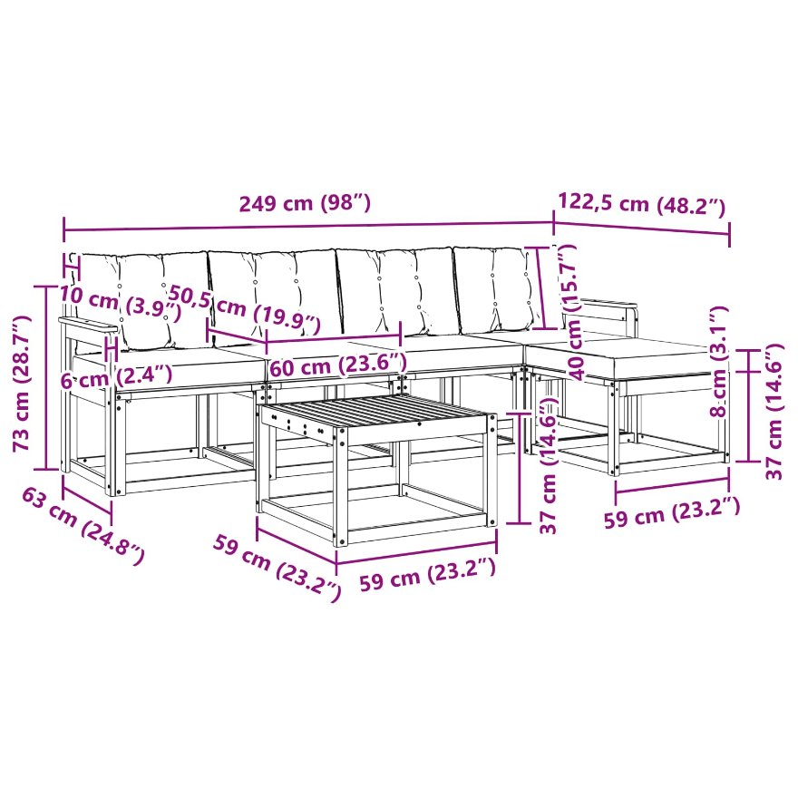 - Gesamtabmessungen: 59 x 59 x 37 cm (L x B x H)