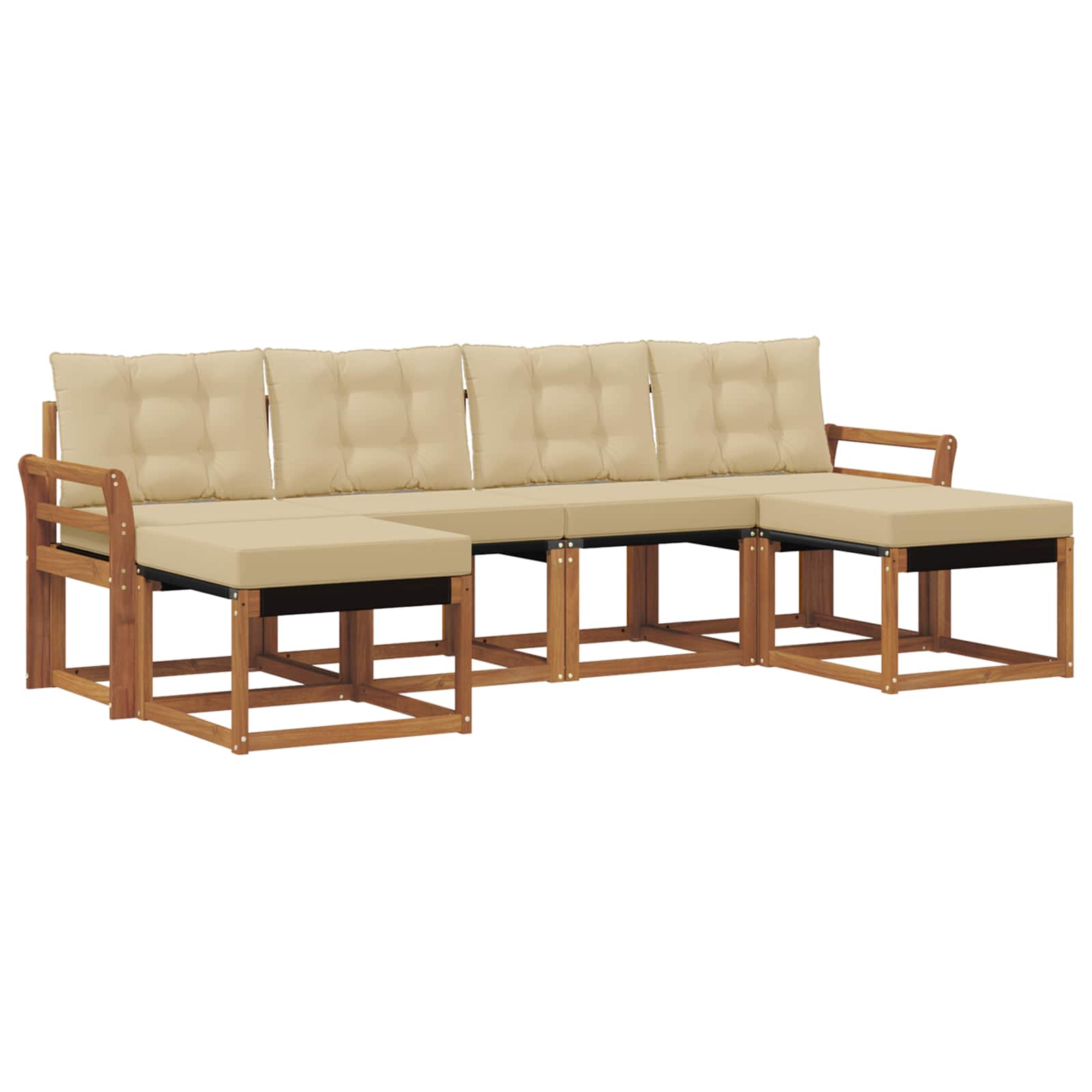 Das Outdoor-Möbelset vereint Stil und Funktionalität und wird zum Hingucker in jedem Garten oder auf der Terrasse. Mit seinem modernen Design, das durch klare Linien besticht, bringt es Eleganz und sorgt für entspannte Outdoor-Momente sowie gesellige Zusammenkünfte. Aus massivem Akazienholz gefertigt, garantiert es Langlebigkeit und ein optisch ansprechendes Aussehen – perfekt für alle, die Praktikabilität und cooles Design bei Gartenmöbeln schätzen. Robustes Massivholz Akazie: Dieses Gartenmöbelset aus solidem Akazienholz ist super langlebig und bestens geeignet für den Außeneinsatz. Es bietet stabile Unterstützung und hält die Farben des Holzes warm und einladend. Wetterfeste Gestaltung: Mit einer lackierten Oberfläche bietet das Set extra Schutz gegen Sonne, leichten Regen und andere Witterungen. So bleibt alles schick und funktional für deinen Garten, deine Terrasse oder deinen Hinterhof. Komponenten & Design: Jedes Detail, von den Armlehnen bis zu den Rückenlehnen, wurde für Stil und Zweck entworfen. Die unterstützenden Features sorgen für zusätzlichen Komfort, während das harmonische Design eine tolle Optik für jedes Outdoor-Event bietet. Komfort & Vielseitigkeit: Das modulare Design erlaubt dir, die Möbel flexibel zu konfigurieren, passend zu deinen Bedürfnissen. Ob zum Entspannen, für gesellige Runden oder ruhige Lese-Momente – dieses Set passt sich ganz leicht jeder Outdoor-Umgebung an und sorgt für maximalen Komfort. Einfache Pflege: Damit die Möbel in Schuss bleiben, reicht es, die Oberfläche mit einem feuchten Tuch abzuwischen. Vermeide starke Reinigungsmittel. Regelmäßige Pflege erhält das Aussehen und verlängert die Lebensdauer der Möbel.