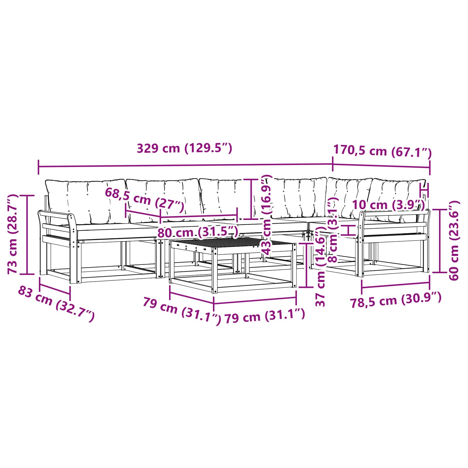 - 6 x Rückenkissen: 80 x 43 x 10 cm (LxBxH)