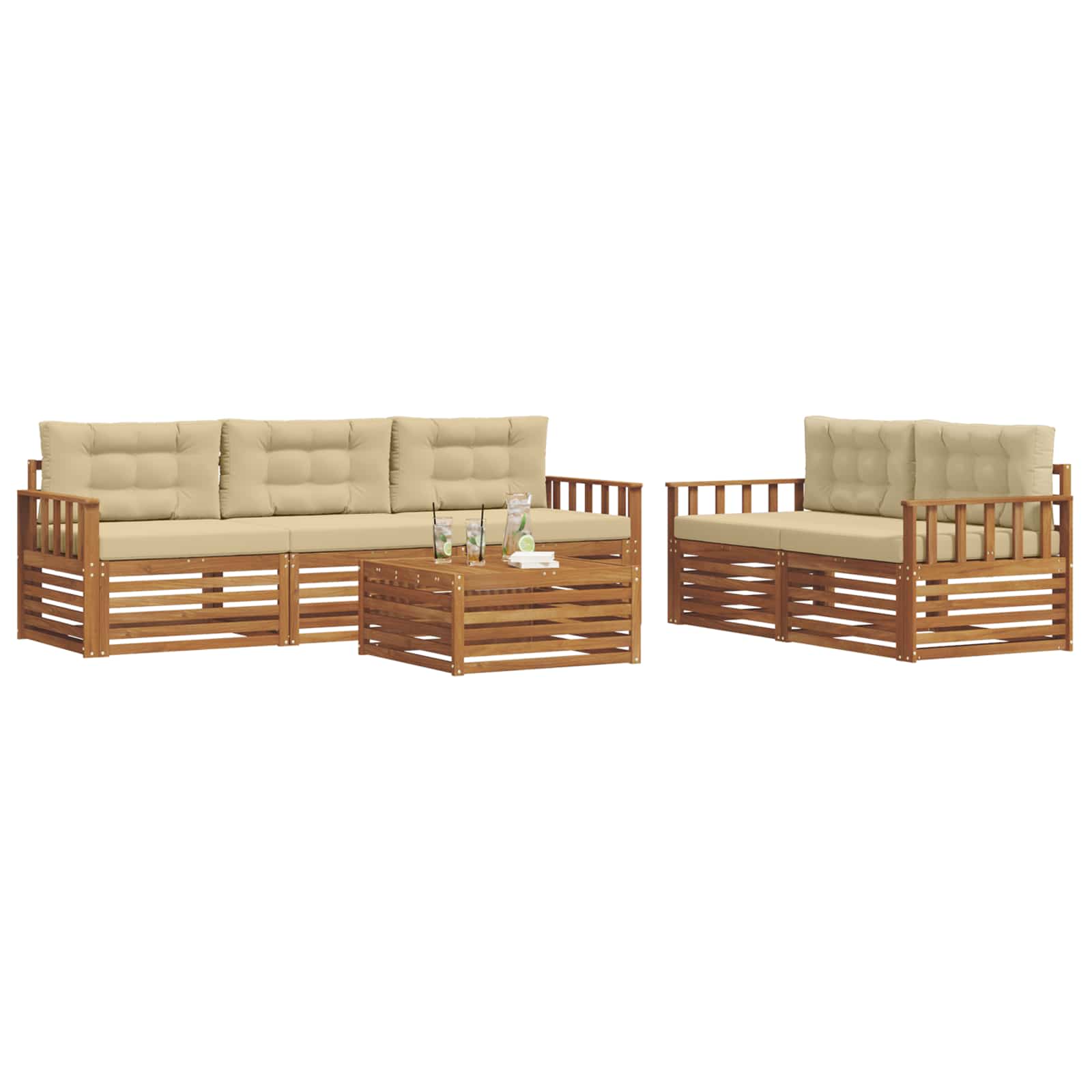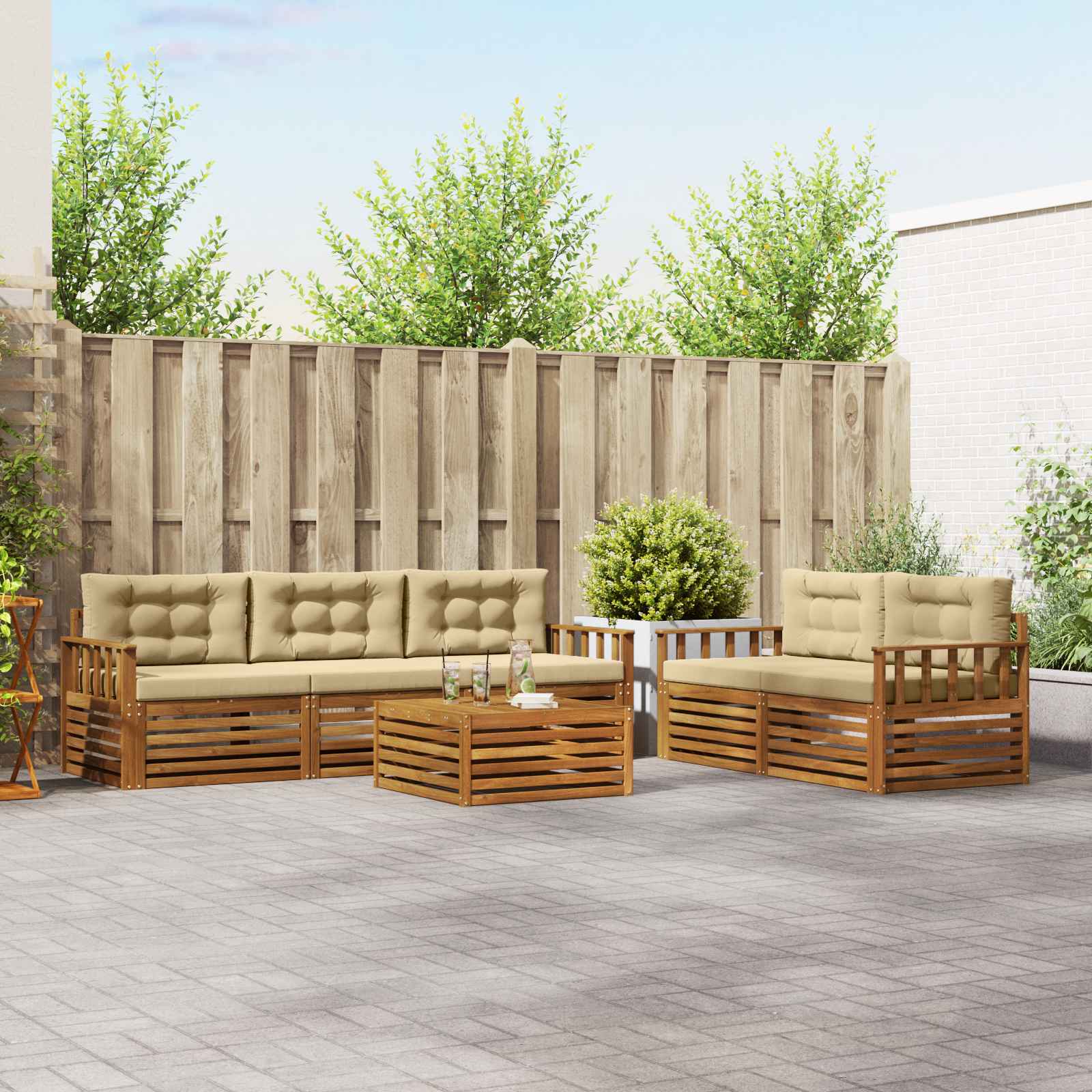Das Gartenmöbel-Set verbindet coolen Style mit praktischer Funktionalität und wird zum echten Hingucker in jedem Garten oder auf jeder Terrasse. Das moderne Design mit klaren Linien und wenigen Details strahlt Eleganz aus und lädt zum Entspannen im Freien oder zu geselligen Runden ein. Hergestellt aus massivem Akazienholz, sorgt das Set für Langlebigkeit und sieht dabei auch noch gut aus – die perfekte Wahl für alle, die praktische und stylische Gartenmöbel wollen. Massives Akazienholz: Dieses Gartenmöbel-Set ist aus solidem Akazienholz gemacht und bekannt für seine Robustheit und Wetterbeständigkeit. Die stabile Bauweise gibt dir verlässliche Unterstützung und langanhaltende Stabilität, während der warme, natürliche Farbton jeden Garten oder jede Terrasse verschönert. Wetterfestes Design: Mit einer lackierten Oberfläche bietet dieses Möbelset extra Schutz gegen Sonne, leichten Regen und andere Witterungen. Die polierte Behandlung sorgt dafür, dass das Set toll aussieht und lange hält, egal ob im Garten, auf der Terrasse oder im Hinterhof. Design & Komponenten: Jedes Stück, von den Armlehnen bis zu den Rückenlehnen, wurde für Style und Funktionalität konzipiert. Praktische Features sorgen für zusätzlichen Komfort und das Design sieht einfach toll aus für verschiedene Außenanlässe. Komfort & Flexibilität: Das modulare Design erlaubt dir, die Anordnung flexibel zu ändern, damit es zu deinen Bedürfnissen passt. Perfekt zum Entspannen, für gesellige Treffen oder ruhige Lesestunden – das Set passt sich deinem Außenbereich an und bietet maximalen Komfort. Einfache Pflege: Halte die Möbel in gutem Zustand, indem du die Oberflächen mit einem feuchten Tuch abwischst und scharfe Reiniger vermeidest. Einfache Pflege trägt dazu bei, das Aussehen zu bewahren und die Lebensdauer deiner Möbel zu verlängern.