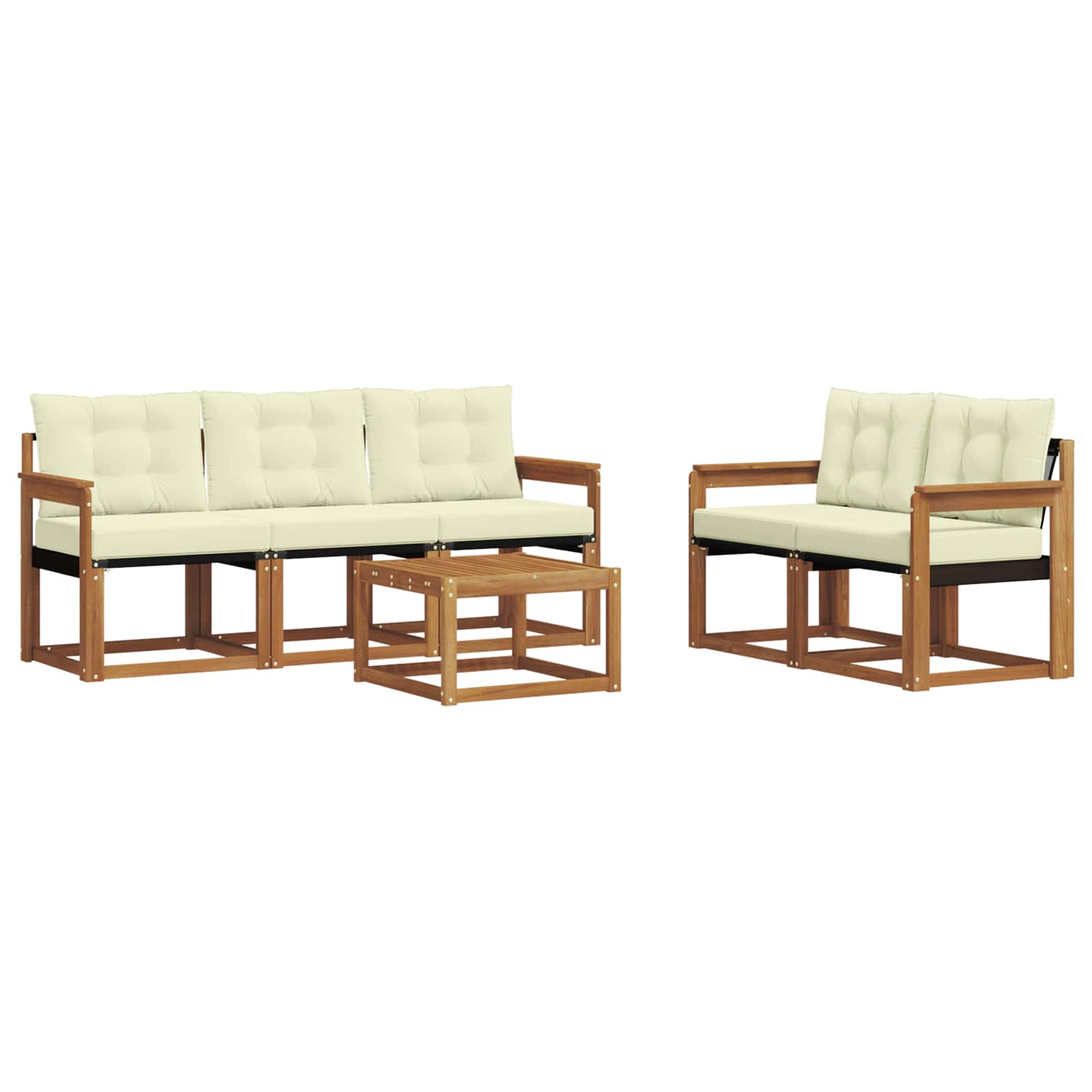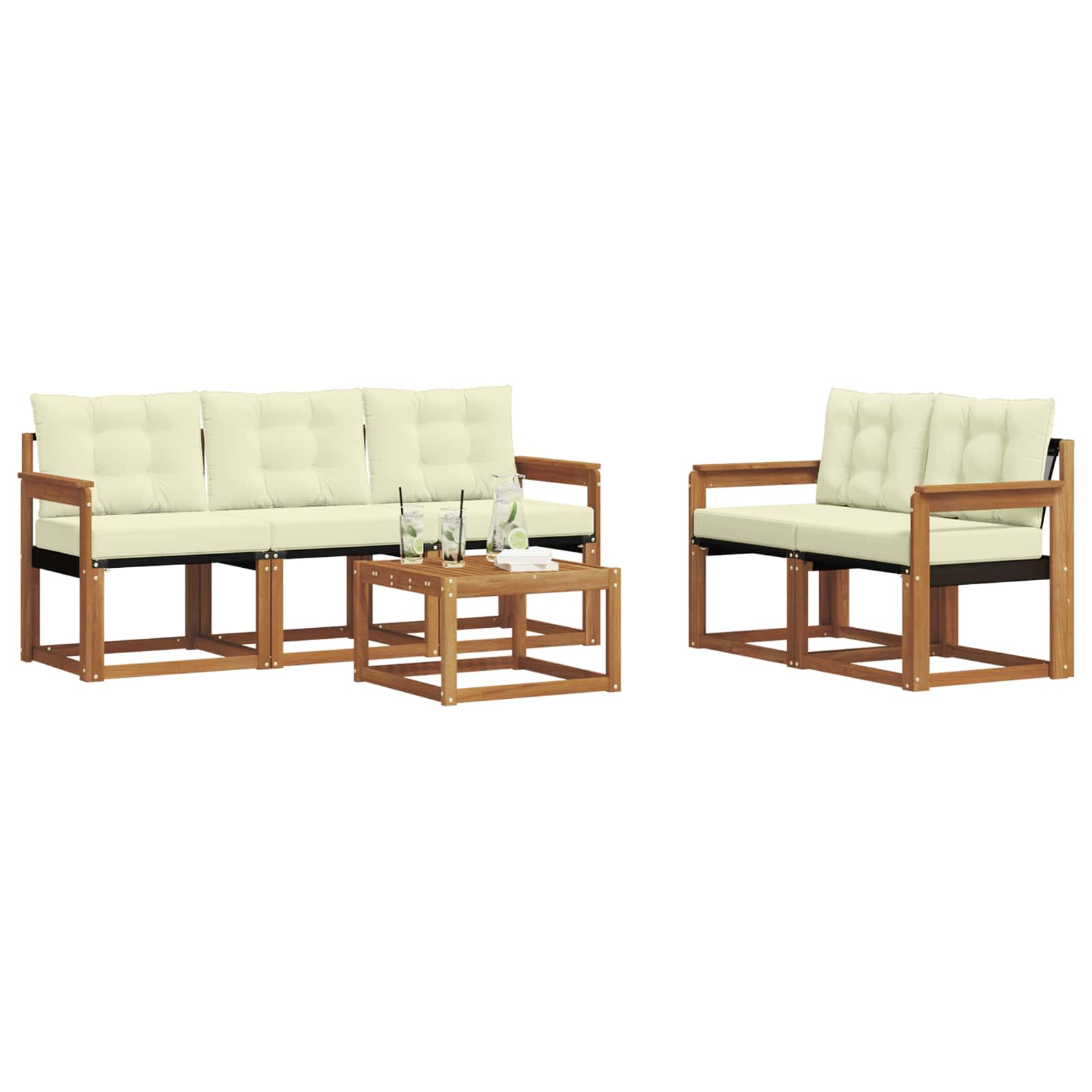 Das Gartenmöbelset hat Stil und Praktikabilität und ist das Mittelpunktstück für jeden Garten oder Terrasse. Sein modernes, klares Design strahlt Eleganz aus und schafft eine entspannende Atmosphäre für gesellige Zusammenkünfte im Freien. Es besteht komplett aus massivem Akazienholz, was für Langlebigkeit und schöne Optik sorgt. Perfekt für alle, die praktische und schicke Gartenmöbel wollen. Langlebiges Massivholz Akazie: Hergestellt aus solidem Akazienholz, ist dieses Möbelset bekannt für seine Widerstandsfähigkeit gegenüber allen Wetterbedingungen. Die robuste Bauweise sorgt für Stabilität und der natürliche Farbton wertet jeden Garten oder Terrasse auf. Wetterbeständiges Design: Das Möbelset hat eine spezielle lackierte Fläche, die es vor Sonne, leichtem Regen und anderen Wettereinflüssen schützt. Das polierte Finish hilft, das Aussehen und die Funktionalität zu erhalten und sorgt für Langlebigkeit in deinem Garten, auf der Terrasse oder im Hinterhof. Komponenten & Design: Jedes Teil, von den Armlehnen bis zu den Rückenlehnen, kombiniert Stil und Funktionalität. Zusätzlicher Komfort wird durch clevere Details geboten, während das durchgängige Design für eine harmonische Optik sorgt, die sich für verschiedene Anlässe im Freien eignet. Komfort & Vielseitigkeit: Das modulare Design ermöglicht dir, die Teile flexibel an deine Bedürfnisse und den verfügbaren Platz anzupassen. Perfekt zum Entspannen, für gesellige Runden oder ruhiges Lesen – dieses Set fügt sich nahtlos in jede Außenumgebung ein und maximiert den Komfort. Einfache Pflege & Wartung: Halte die Möbel in Schuss, indem du die Oberfläche regelmäßig mit einem feuchten Tuch abwischst und aggressive Reinigungsmittel vermeidest. Mit der richtigen Pflege bleibt das Set lange schön und erhaltet sich optimal.