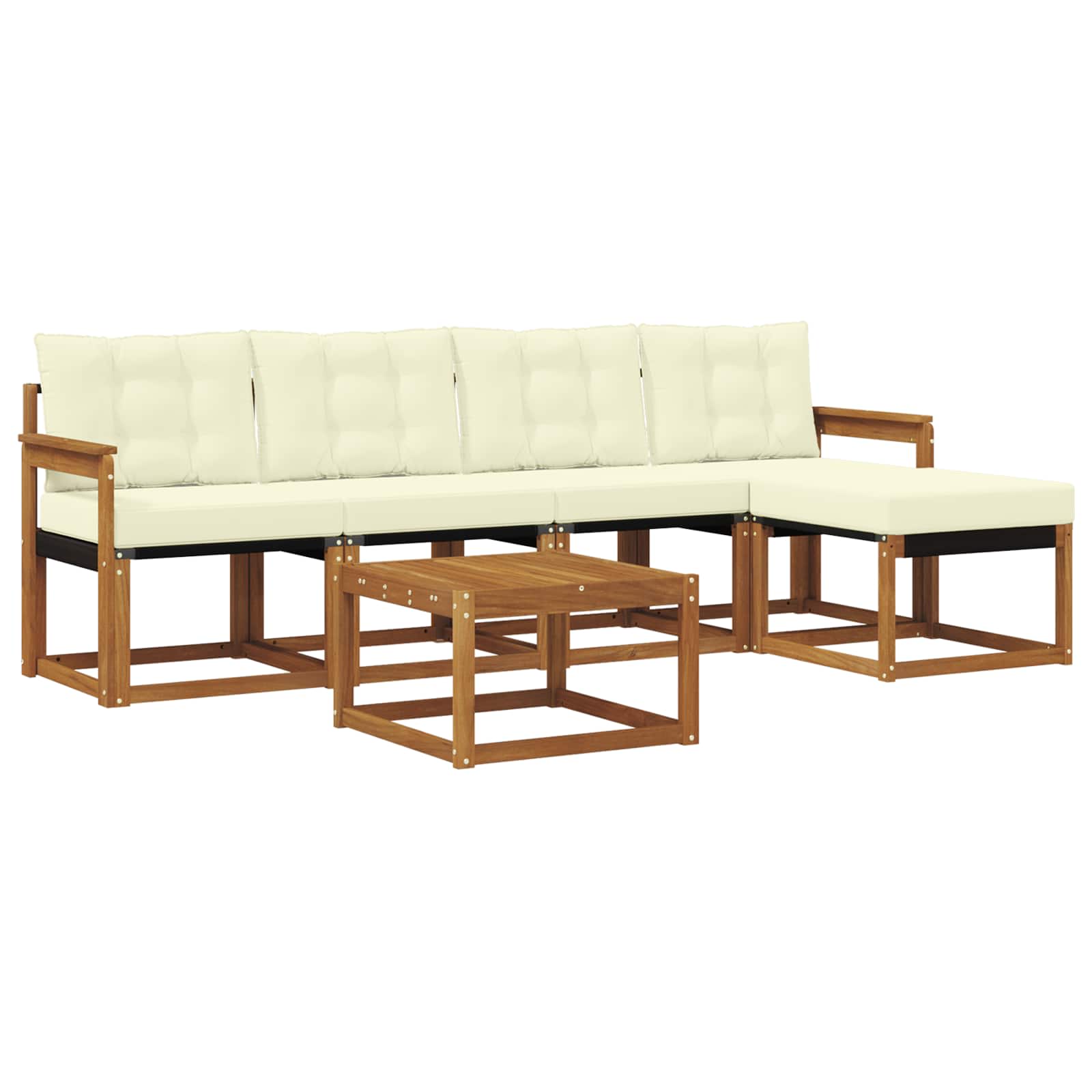 Das Gartenmöbelset kombiniert Stil und Nutzen und wird zum Star in jedem Garten oder auf jeder Terrasse. Es hat ein modernes Design mit klaren Linien und minimalistischen Details, das Eleganz ausstrahlt und dir hilft, im Freien zu entspannen oder Zeit mit Freunden zu verbringen. Hergestellt aus solidem Akazienholz, ist es nicht nur haltbar, sondern sieht auch gut aus – die perfekte Wahl für alle, die praktische und schicke Möbel suchen. Langlebiges Massivholz Akazie: Dieses Set ist aus solidem Akazienholz, das für seine hohe Langlebigkeit und Wetterbeständigkeit bekannt ist. Robuste Verarbeitung sorgt für Stabilität und der natürliche Farbton bringt Gemütlichkeit in jeden Garten oder auf jede Terrasse. Wetterbeständiges Design: Die lackierte Oberfläche schützt vor Sonne, Regen und anderen Witterungseinflüssen. So bleibt das Set lange schön und funktional für deinen Garten, deine Terrasse oder deinen Hinterhof. Komponenten & Design: Jedes Stück, von den Armlehnen bis zu den Rückenlehnen, wurde für Stil und Nutzen gestaltet. Komfortable Details sorgen dafür, dass du es dir gut gehen lassen kannst, und das ansprechende Design macht das Set zur perfekten Wahl für verschiedene Outdoor-Anlässe. Komfort & Vielseitigkeit: Das modulare Design erlaubt flexible Aufstellungen, die sich an deine Wünsche anpassen lassen. Es ist ideal zum Entspannen, für gemeinsame Momente oder ruhige Lesestunden und passt sich jedem Außenbereich an. Einfache Pflege & Wartung: Halte die Möbel in Topform, indem du mit einem feuchten Tuch drüberwischt und schrubben oder aggressive Reiniger vermeidest. Regelmäßige Pflege erhält das Aussehen und verlängert die Lebensdauer.
