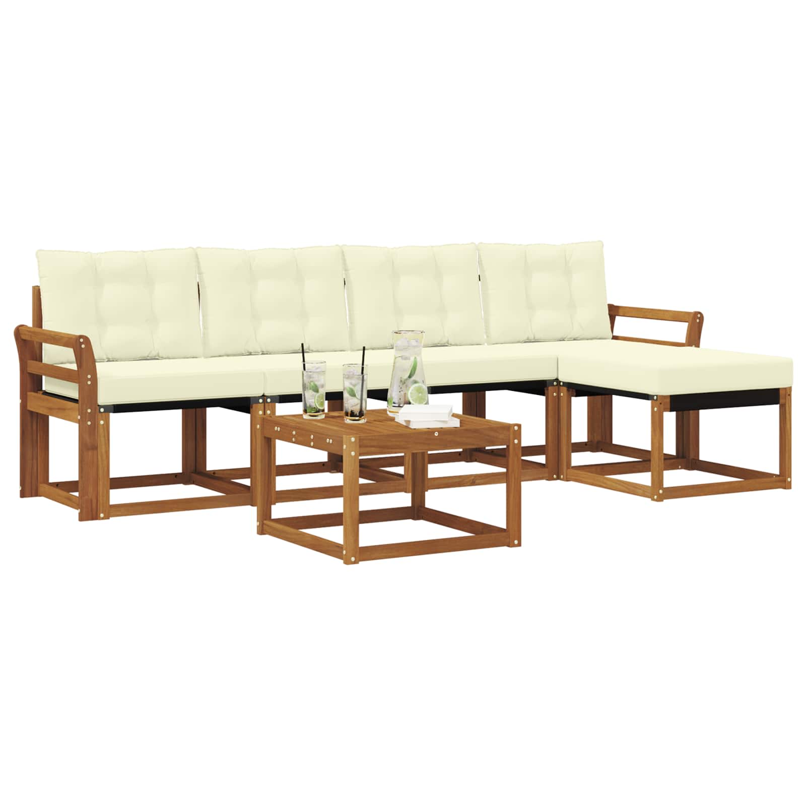Das Gartenmöbelset kombiniert Stil und Nutzen und wird zum Star in jedem Garten oder auf jeder Terrasse. Es hat ein modernes Design mit klaren Linien und minimalistischen Details, das Eleganz ausstrahlt und dir hilft, im Freien zu entspannen oder Zeit mit Freunden zu verbringen. Hergestellt aus solidem Akazienholz, ist es nicht nur haltbar, sondern sieht auch gut aus – die perfekte Wahl für alle, die praktische und schicke Möbel suchen. Langlebiges Massivholz Akazie: Dieses Set ist aus solidem Akazienholz, das für seine hohe Langlebigkeit und Wetterbeständigkeit bekannt ist. Robuste Verarbeitung sorgt für Stabilität und der natürliche Farbton bringt Gemütlichkeit in jeden Garten oder auf jede Terrasse. Wetterbeständiges Design: Die lackierte Oberfläche schützt vor Sonne, Regen und anderen Witterungseinflüssen. So bleibt das Set lange schön und funktional für deinen Garten, deine Terrasse oder deinen Hinterhof. Komponenten & Design: Jedes Stück, von den Armlehnen bis zu den Rückenlehnen, wurde für Stil und Nutzen gestaltet. Komfortable Details sorgen dafür, dass du es dir gut gehen lassen kannst, und das ansprechende Design macht das Set zur perfekten Wahl für verschiedene Outdoor-Anlässe. Komfort & Vielseitigkeit: Das modulare Design erlaubt flexible Aufstellungen, die sich an deine Wünsche anpassen lassen. Es ist ideal zum Entspannen, für gemeinsame Momente oder ruhige Lesestunden und passt sich jedem Außenbereich an. Einfache Pflege & Wartung: Halte die Möbel in Topform, indem du mit einem feuchten Tuch drüberwischt und schrubben oder aggressive Reiniger vermeidest. Regelmäßige Pflege erhält das Aussehen und verlängert die Lebensdauer.