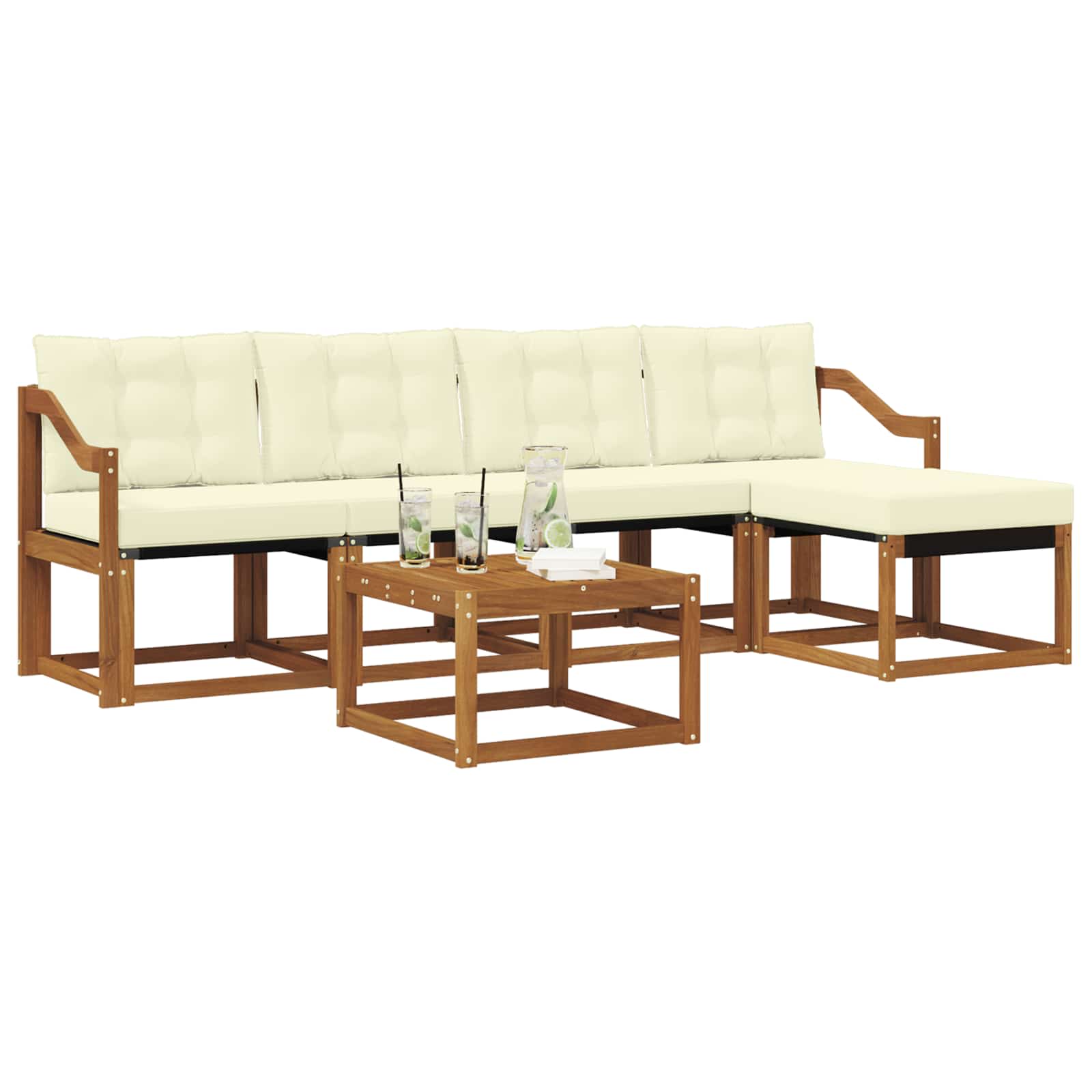Das Gartenmöbelset kombiniert Stil und Nutzen und wird zum Star in jedem Garten oder auf jeder Terrasse. Es hat ein modernes Design mit klaren Linien und minimalistischen Details, das Eleganz ausstrahlt und dir hilft, im Freien zu entspannen oder Zeit mit Freunden zu verbringen. Hergestellt aus solidem Akazienholz, ist es nicht nur haltbar, sondern sieht auch gut aus – die perfekte Wahl für alle, die praktische und schicke Möbel suchen. Langlebiges Massivholz Akazie: Dieses Set ist aus solidem Akazienholz, das für seine hohe Langlebigkeit und Wetterbeständigkeit bekannt ist. Robuste Verarbeitung sorgt für Stabilität und der natürliche Farbton bringt Gemütlichkeit in jeden Garten oder auf jede Terrasse. Wetterbeständiges Design: Die lackierte Oberfläche schützt vor Sonne, Regen und anderen Witterungseinflüssen. So bleibt das Set lange schön und funktional für deinen Garten, deine Terrasse oder deinen Hinterhof. Komponenten & Design: Jedes Stück, von den Armlehnen bis zu den Rückenlehnen, wurde für Stil und Nutzen gestaltet. Komfortable Details sorgen dafür, dass du es dir gut gehen lassen kannst, und das ansprechende Design macht das Set zur perfekten Wahl für verschiedene Outdoor-Anlässe. Komfort & Vielseitigkeit: Das modulare Design erlaubt flexible Aufstellungen, die sich an deine Wünsche anpassen lassen. Es ist ideal zum Entspannen, für gemeinsame Momente oder ruhige Lesestunden und passt sich jedem Außenbereich an. Einfache Pflege & Wartung: Halte die Möbel in Topform, indem du mit einem feuchten Tuch drüberwischt und schrubben oder aggressive Reiniger vermeidest. Regelmäßige Pflege erhält das Aussehen und verlängert die Lebensdauer.