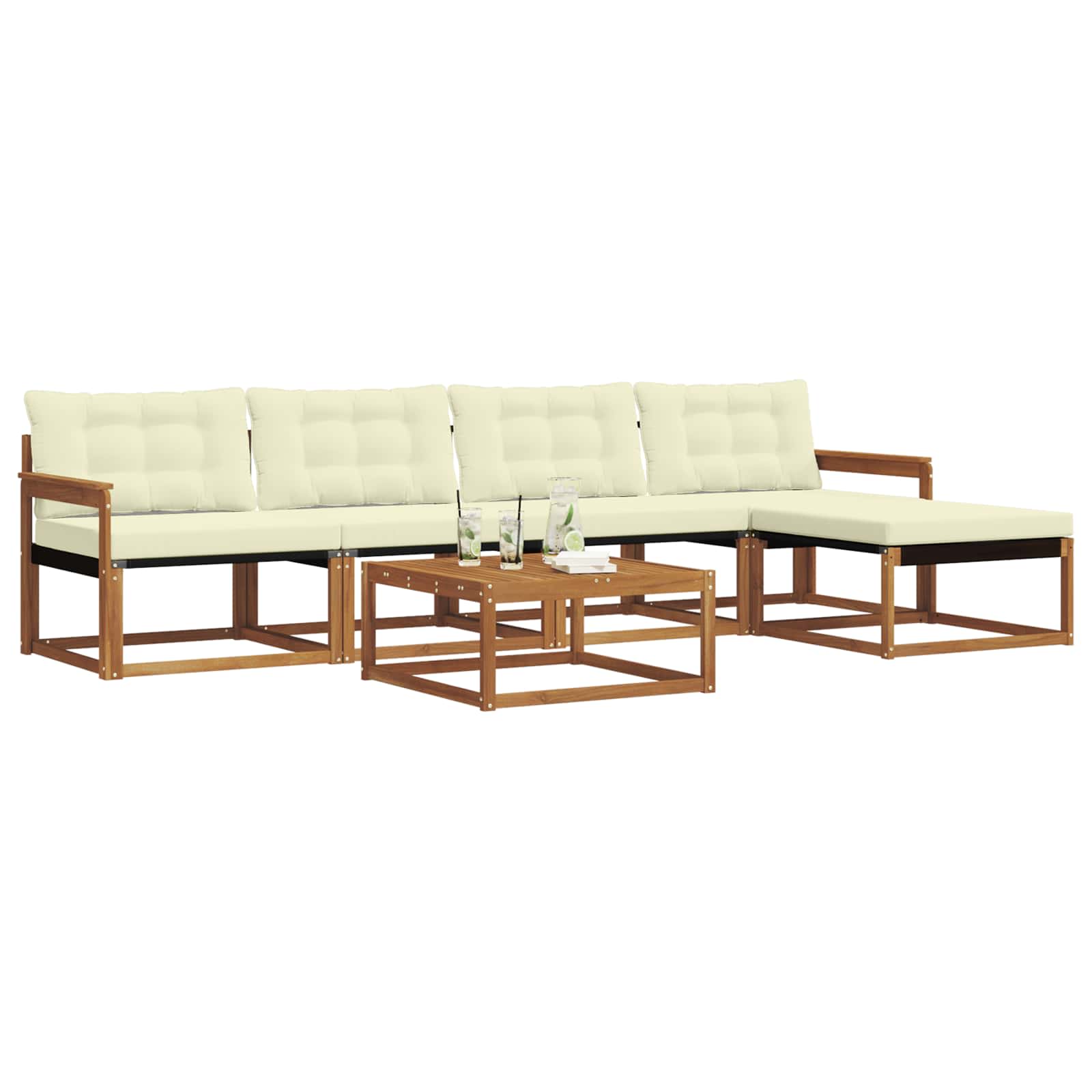Dieses moderne Sofa-Set wertet deinen Garten oder deine Terrasse echt auf. Es kombiniert minimalistisches Design mit robuster Funktionalität und ist ideal für alle, die die Einfachheit und Eleganz der natürlichen Elemente schätzen. Es ist die perfekte Auszeit im Freien und wurde mit viel Liebe zum Detail entworfen – ideal für gesellige Zusammenkünfte oder ruhige Momente der Reflexion. Hochwertige Materialien: Das Set besteht aus solidem Akazienholz und Textilene und ist langlebig und ästhetisch. Die warmen, natürlichen Holzfarben harmonieren perfekt mit dem eleganten Textilene-Stoff und machen das Sofa-Set zu einem zeitlosen Element in deinem Garten. Enthaltene Komponenten: Bequeme Armlehnen aus solidem Akazienholz sorgen für Komfort und Stil. Im Set sind auch wetterfeste Outdoor-Kissen enthalten, die dick gepolstert sind und ein gemütliches Sitzen ermöglichen. Die unterstützende Rückenlehne trägt zur Entspannung bei. Schlaue Features: Dank des modularen Aufbaus kannst du die Anordnung easy variieren. Die fade-resistente Oberfläche sorgt für eine einfache Pflege und bewahrt die lebendige Optik im Laufe der Zeit. Die praktischen Armlehnen erhöhen den Sitzkomfort. Vielseitige Nutzung: Perfekt geeignet für Terrassen und Gärten. Die großzügige Anordnung bietet viele Nutzungsmöglichkeiten, vom Entspannen allein bis zu geselligen Treffen, und passt sich deinen Bedürfnissen spielend an. Pflege & Wartung: Pflege das Sofa-Set ganz einfach mit ein paar einfachen Schritten – benutze ein feuchtes Tuch zum Saubermachen. Die Kissen sind abnehmbar und mit einem Reißverschluss ausgestattet, was die Pflege erleichtert und für langanhaltende Frische sorgt.