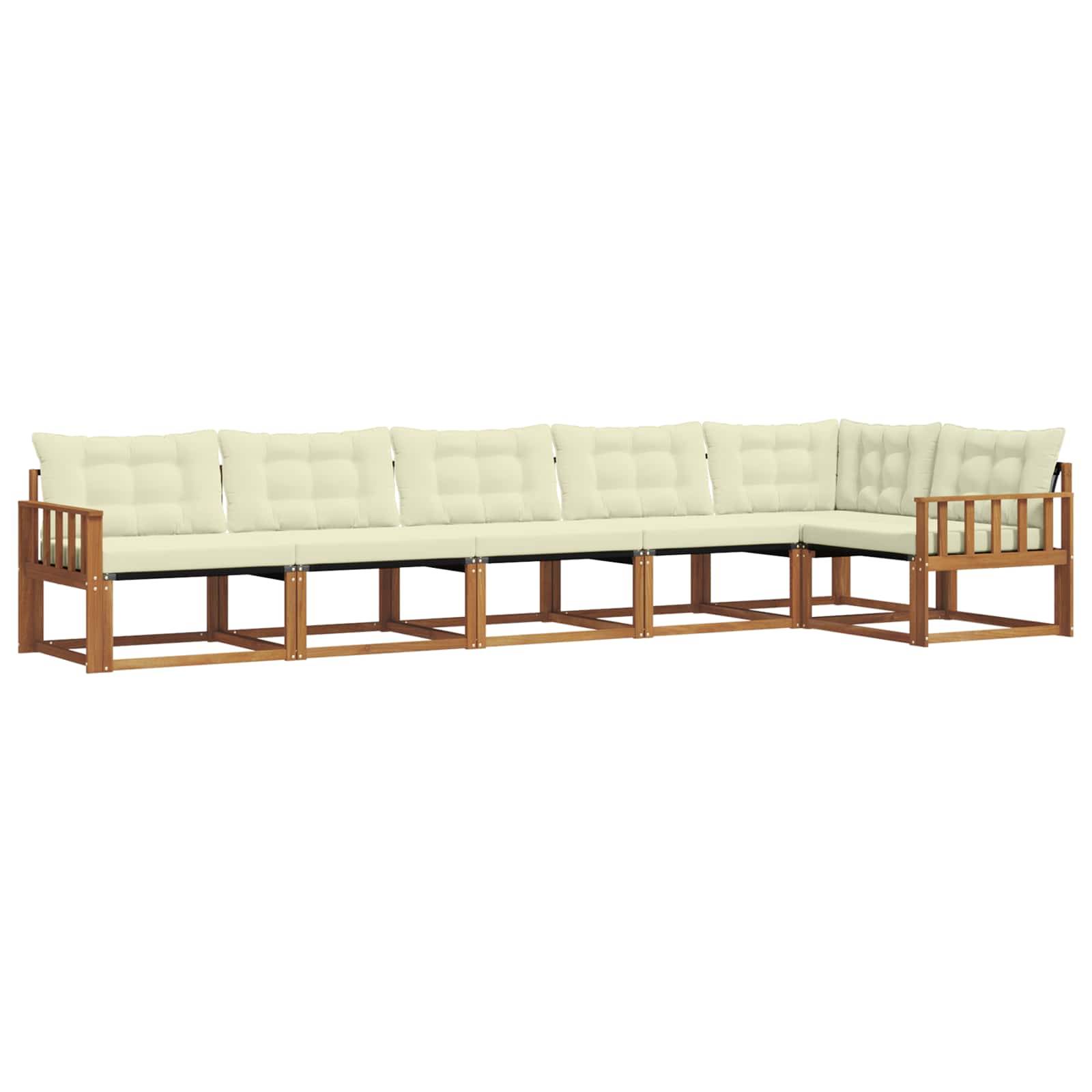 Dieses moderne Sofaset für den Außenbereich vereint Stil und Funktionalität und ist eine coole Bereicherung für deinen Garten oder deine Terrasse. Es ist aus massivem Akazienholz und Textilene gefertigt, was einen modernen Charme versprüht und gleichzeitig bequem ist. Ideal für gesellige Treffen, bietet dieses Sofaset genug Platz für die Familie und Freunde und sorgt so für unvergessliche Momente bei jeder Outdoor-Party. Massivholz Akazie: Die robuste Bauweise aus Akazienholz ist stylish und hält jede Wetterlage aus. Dieses Material sorgt dafür, dass das Set lange hält und immer gut aussieht, egal ob bei Regen oder Sonne. Wetterbeständiges Kissen: Die Kissen aus wetterfestem Stoff sind bequem und dauern lange. Die integrierte Schaumfüllung macht das Sitzen total angenehm, perfekt für entspannte Nachmittage in der Sonne. Unterstützendes Design: Mit der bequemen Rückenlehne und den praktischen Armlehnen wird das Sitzen noch angenehmer. Ideal für gesellige Abende oder einfach zum Relaxen, dieses Set lädt ein, sich zu entspannen. Modulare Anordnung: Das modulare Design macht es möglich, das Sofaset flexibel zu konfigurieren. Es passt sich leicht an verschiedene Räume und Veranstaltungen an, perfekt für deine Terrasse und jeden Anlass, wenn viele Gäste kommen. Einfache Pflege: Dieses Set ist pflegeleicht, die Oberflächen sind abwischbar und die Kissen haben einen Reißverschluss zum leichten Abnehmen, was die Reinigung kinderleicht macht.