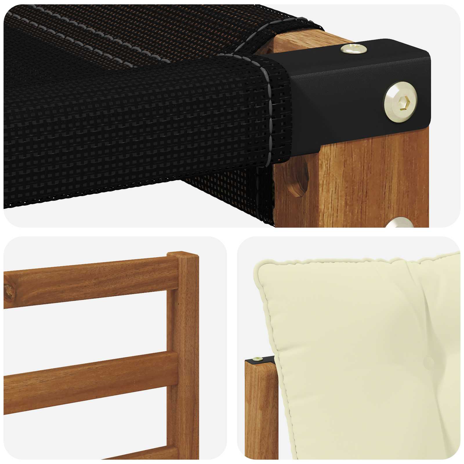 - Material: Massives Akazienholz und Textilene