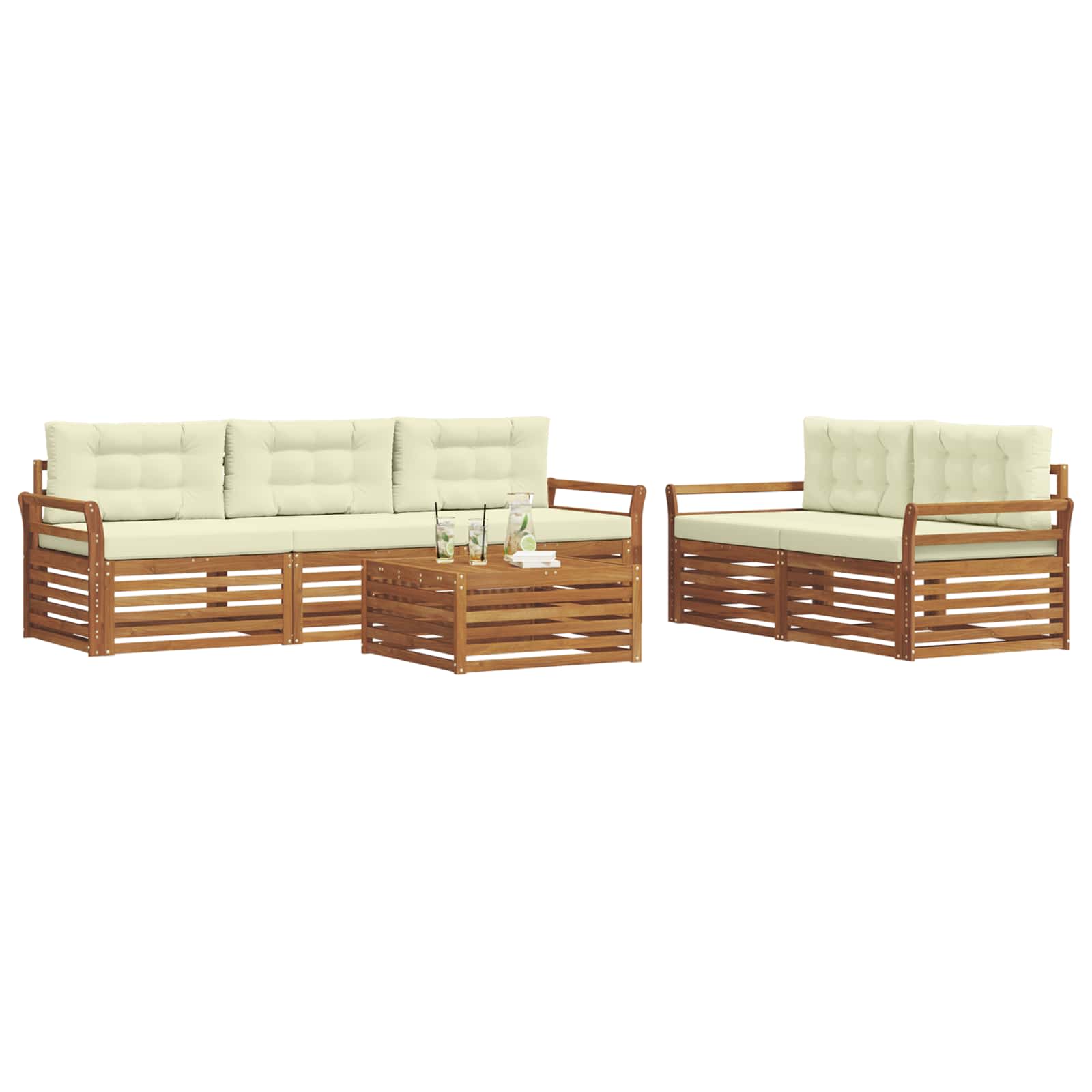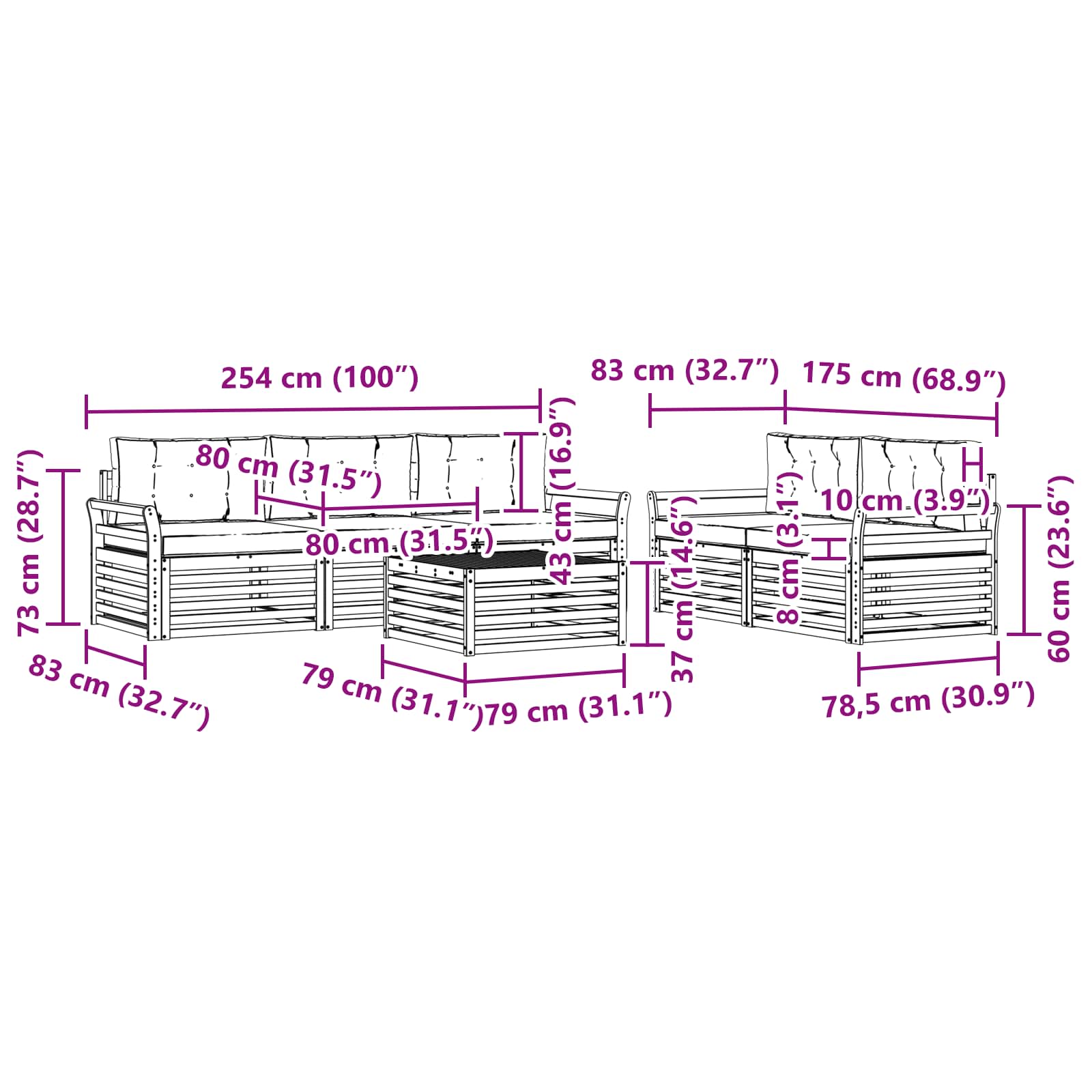 Das Gartenmöbel-Set verbindet coolen Style mit praktischer Funktionalität und wird zum echten Hingucker in jedem Garten oder auf jeder Terrasse. Das moderne Design mit klaren Linien und wenigen Details strahlt Eleganz aus und lädt zum Entspannen im Freien oder zu geselligen Runden ein. Hergestellt aus massivem Akazienholz, sorgt das Set für Langlebigkeit und sieht dabei auch noch gut aus – die perfekte Wahl für alle, die praktische und stylische Gartenmöbel wollen. Massives Akazienholz: Dieses Gartenmöbel-Set ist aus solidem Akazienholz gemacht und bekannt für seine Robustheit und Wetterbeständigkeit. Die stabile Bauweise gibt dir verlässliche Unterstützung und langanhaltende Stabilität, während der warme, natürliche Farbton jeden Garten oder jede Terrasse verschönert. Wetterfestes Design: Mit einer lackierten Oberfläche bietet dieses Möbelset extra Schutz gegen Sonne, leichten Regen und andere Witterungen. Die polierte Behandlung sorgt dafür, dass das Set toll aussieht und lange hält, egal ob im Garten, auf der Terrasse oder im Hinterhof. Design & Komponenten: Jedes Stück, von den Armlehnen bis zu den Rückenlehnen, wurde für Style und Funktionalität konzipiert. Praktische Features sorgen für zusätzlichen Komfort und das Design sieht einfach toll aus für verschiedene Außenanlässe. Komfort & Flexibilität: Das modulare Design erlaubt dir, die Anordnung flexibel zu ändern, damit es zu deinen Bedürfnissen passt. Perfekt zum Entspannen, für gesellige Treffen oder ruhige Lesestunden – das Set passt sich deinem Außenbereich an und bietet maximalen Komfort. Einfache Pflege: Halte die Möbel in gutem Zustand, indem du die Oberflächen mit einem feuchten Tuch abwischst und scharfe Reiniger vermeidest. Einfache Pflege trägt dazu bei, das Aussehen zu bewahren und die Lebensdauer deiner Möbel zu verlängern.