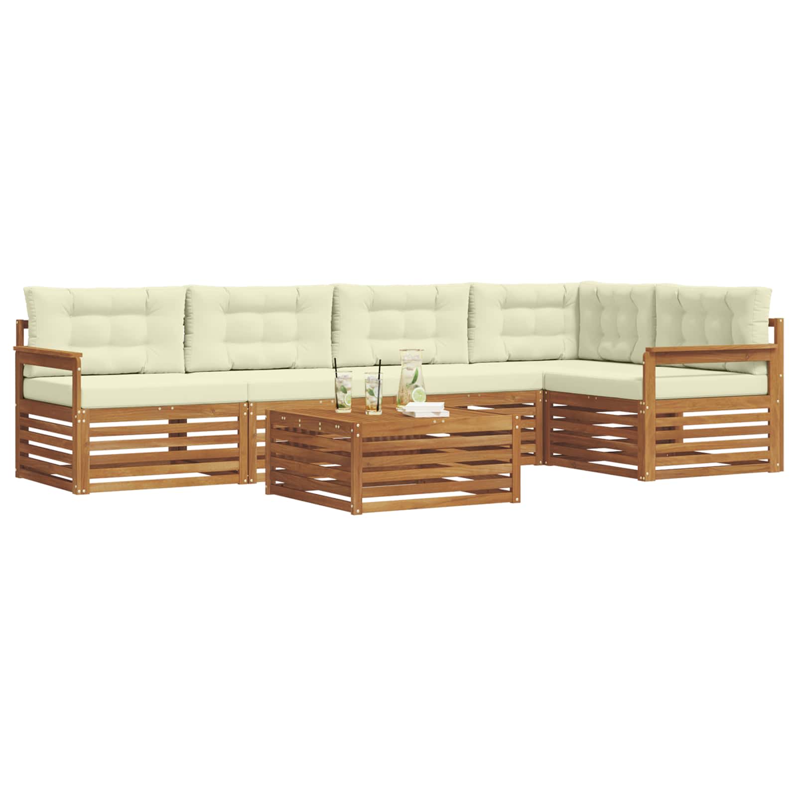 Dieses Outdoor-Möbelset vereint Stil und Funktionalität und wird zum Blickfang für jeden Garten oder Terrasse. Das moderne Design mit klaren Linien und minimalistischen Details gibt dem Ganzen einen eleganten Touch und sorgt gleichzeitig für Entspannung und gemütliche Zusammenkünfte im Freien. Hergestellt aus massivem Akazienholz, garantiert das Set Robustheit und anhaltende Schönheit, perfekt für alle, die praktische und stilvolle Möbel für draußen suchen. Langlebiges massives Akazienholz: Hergestellt aus massivem Akazienholz, ist dieses Set bekannt für seine Haltbarkeit und Widerstandsfähigkeit gegen Wetter. Die robuste Bauweise sorgt für zuverlässigen Halt und lange Stabilität und die warme, natürliche Farbe wertet jeden Garten oder Terrasse auf. Wetterbeständiges Design: Mit einer beschichteten Oberfläche bietet dieses Möbelset guten Schutz gegen Sonne, leichten Regen und andere äußere Einflüsse. Das polierte Finish bewahrt sowohl Aussehen als auch Funktionalität und sorgt für lange Haltbarkeit in deinem Garten, auf der Terrasse oder im Hinterhof. Komponenten & Design: Jedes Teil, von den Armlehnen bis zu den Rückenlehnen, wird für Stil und Funktionalität entworfen. Unterstützende Eigenschaften sorgen für mehr Komfort und das zusammenhängende Design schafft ein ansprechendes Gesamtbild für verschiedene Outdoor-Events. Komfort & Vielseitigkeit: Das modulare Design ermöglicht flexible Anordnungen, die sich an verschiedene Räume und Bedürfnisse anpassen. Perfekt zum Entspannen, für Feiern oder ruhige Lesestunden, passt sich dieses Set mühelos deiner Außenumgebung an und maximiert den Komfort und die Möglichkeiten. Einfache Pflege & Wartung: Halte deine Möbel in einem guten Zustand, indem du die Oberfläche mit einem feuchten Tuch reinigst und scharfe Reiniger vermeidest. Regelmäßige Pflege hilft, das Aussehen zu bewahren und die Lebensdauer der Möbel zu verlängern.