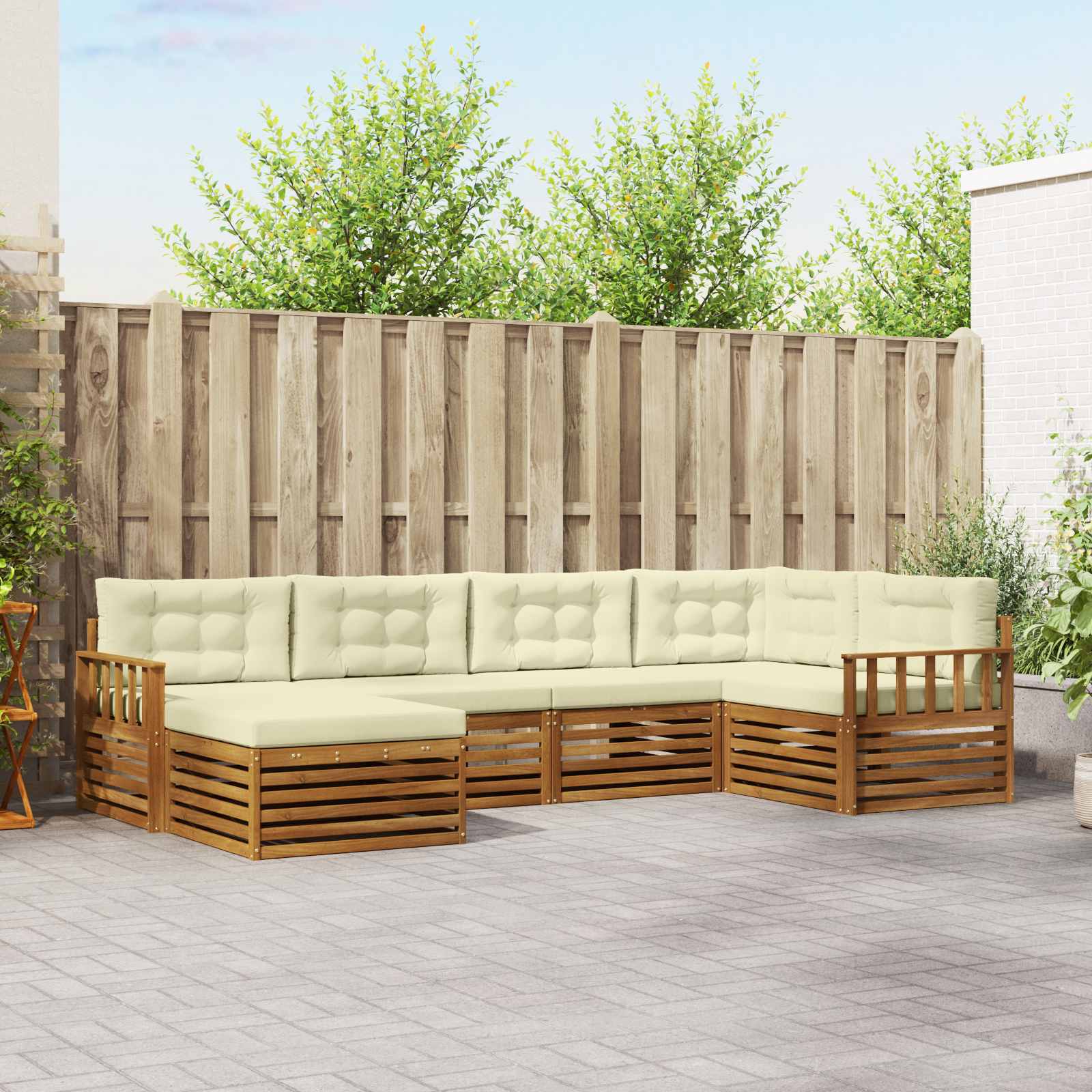 Das Outdoor-Möbelset verbindet Stil mit Funktionalität und wird zum Hingucker für jeden Garten oder jede Terrasse. Sein modernes Design mit klaren Linien ist echt elegant und sorgt für Entspannung und geselliges Beisammensein im Freien. Komplett aus massivem Akazienholz gefertigt, steht das Set für Langlebigkeit und zeitlose Anziehungskraft – perfekt für alle, die praktische und schicke Möbel für draußen wollen. Langlebiges Massivholz Akazie: Aus robustem Akazienholz gefertigt, ist dieses Outdoor-Möbelset top in Sachen Langlebigkeit und witterungsbeständig. Der starke Aufbau sorgt für sicheren Halt und Stabilität über die Jahre, während der warme natürliche Farbton jede Garten- oder Terrassenatmosphäre aufpeppt. Wetterbeständiges Design: Mit seiner lackierten Oberfläche bietet dieses Set einen zusätzlichen Schutz gegen Sonne und leichten Regen. Der polierte Look hilft dabei, die Optik und die Funktionalität zu erhalten, sodass es lange Freude in deinem Garten, auf deiner Terrasse oder im Hinterhof bringt. Komponenten & Design: Jedes Teil wurde sowohl für Stil als auch für Funktionalität entworfen. Praktische Features kommen mit Komfort zusammen, und das einheitliche Design sorgt für eine harmonische Optik bei jedem Outdoor-Event. Komfort & Vielseitigkeit: Dank des modularen Designs kannst du flexibel konfigurieren, wie du willst. Ob für Entspannung, gesellige Treffen oder ruhige Lesestunden – dieses Set passt sich mühelos jeder Außenumgebung an und maximiert den Komfort. Einfache Pflege & Wartung: Um die Möbel in Schuss zu halten, wische einfach die Oberfläche mit einem feuchten Tuch ab und vermeide grobe Reiniger. Regelmäßige Pflege erhält das Aussehen und verlängert die Lebensdauer der Möbel.