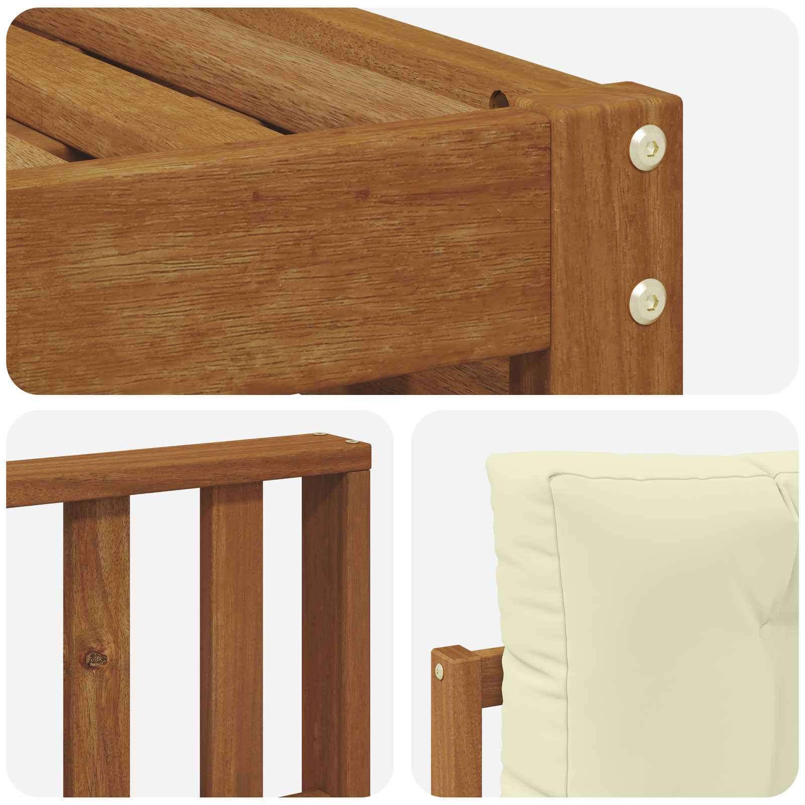 - Material: Massives Akazienholz und Polyester