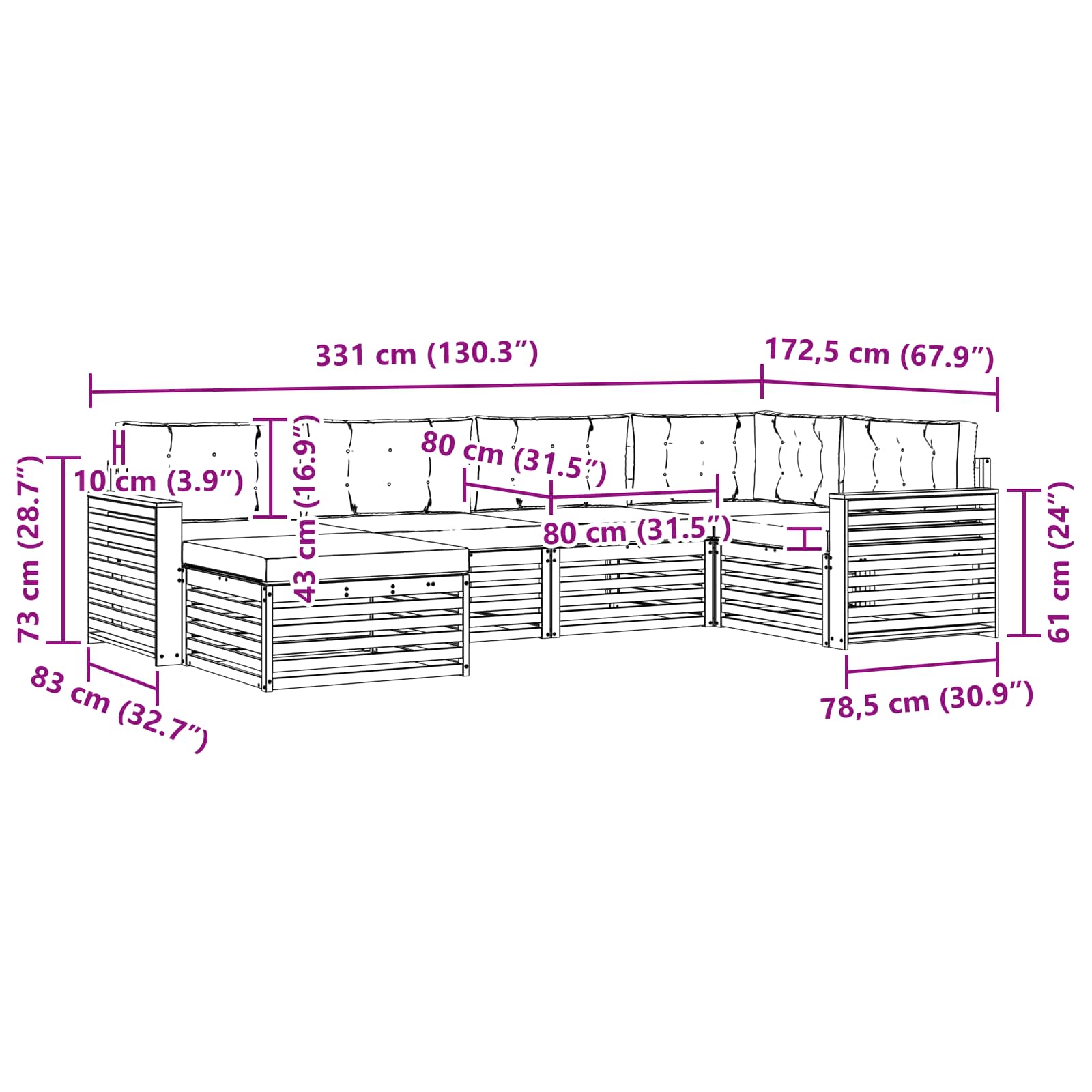 - 6 x Sitzkissen: 80 x 80 x 8 cm (LxBxH)