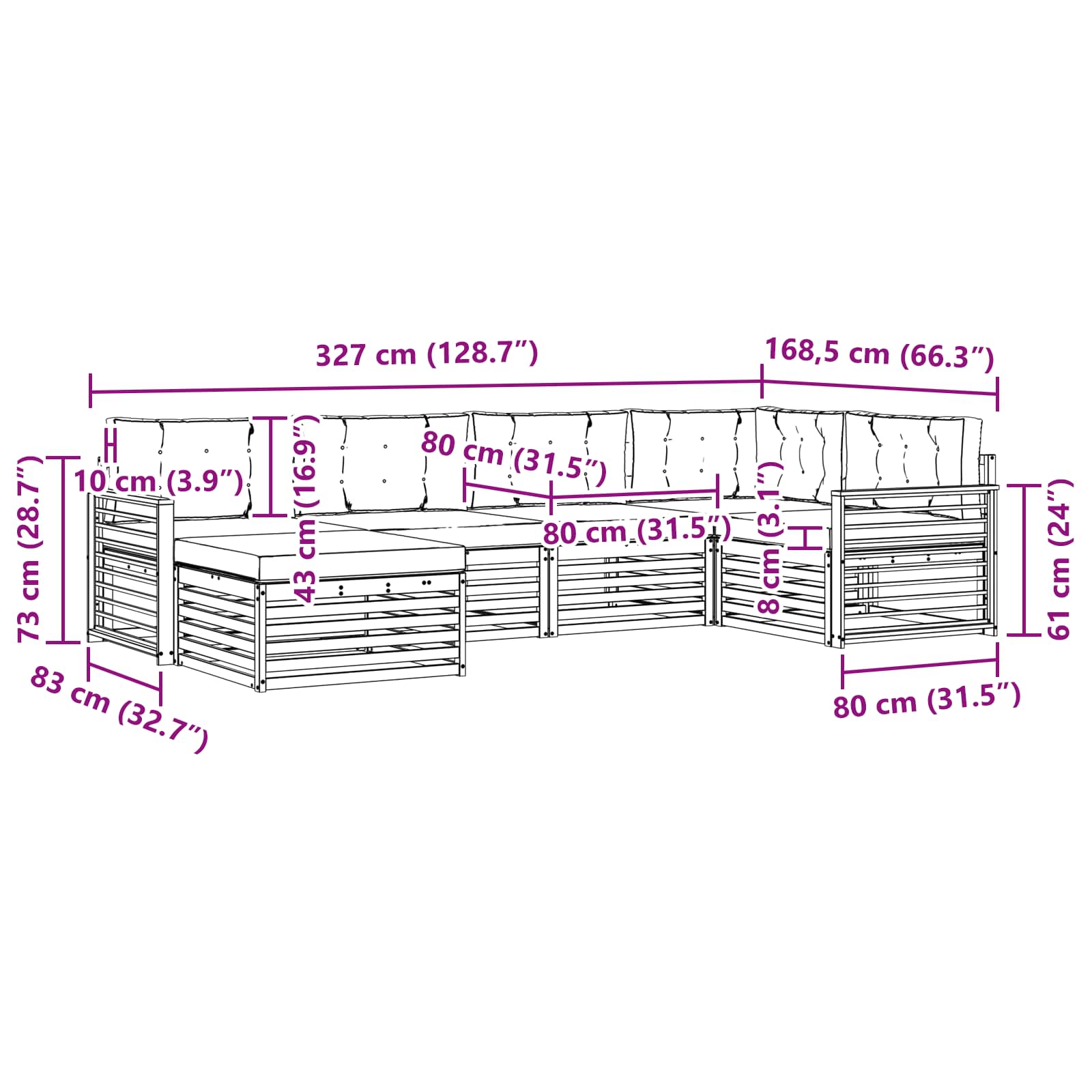 - 6 x Sitzkissen: 80 x 80 x 8 cm (LxBxH)