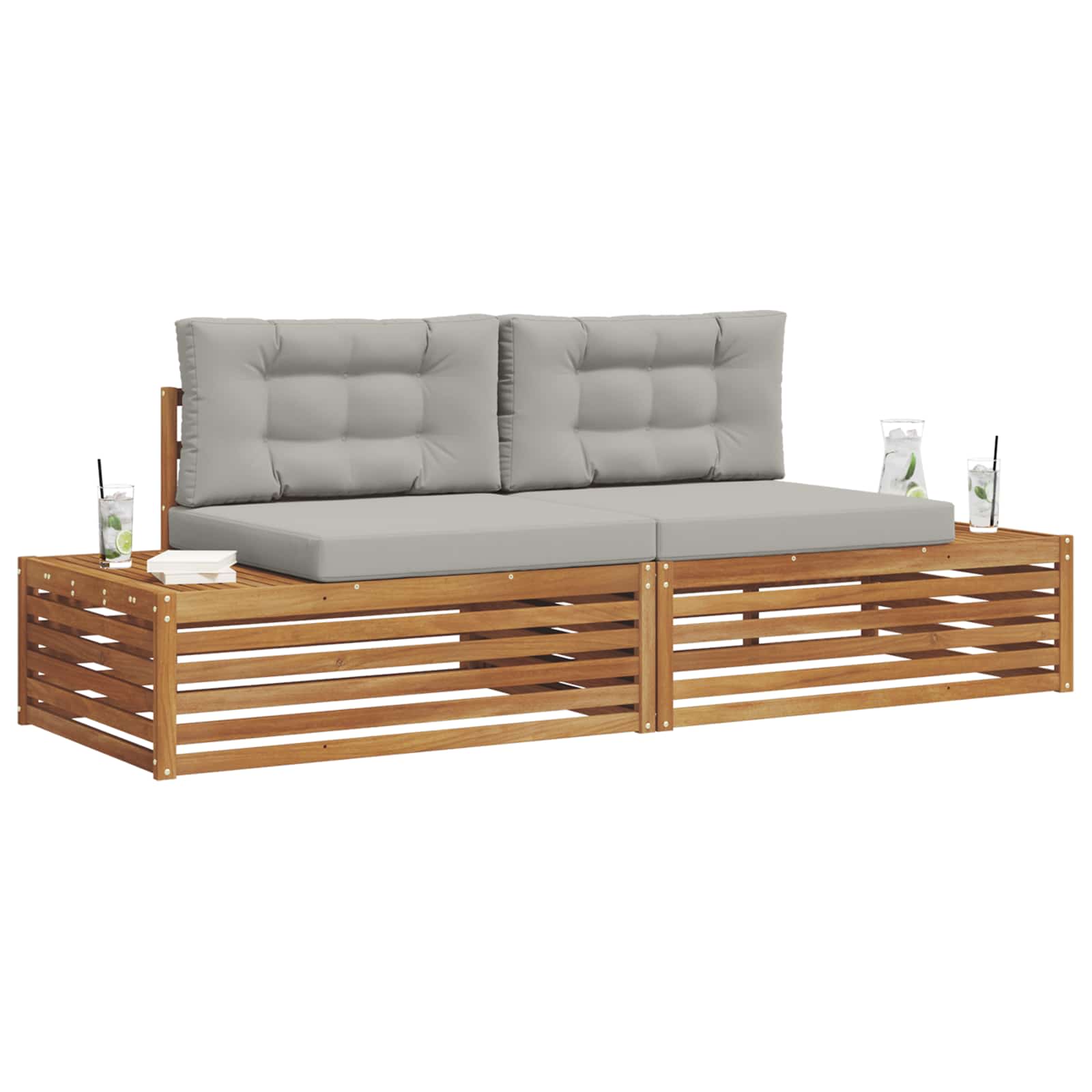 Das Gartenmöbelset ist stylish und praktisch und wird zum echten Blickfang für jeden Garten oder Terrasse. Mit seinem modernen Design, klaren Linien und minimalistischen Details bringt es Eleganz und sorgt gleichzeitig für eine entspannte Atmosphäre bei geselligen Zusammenkünften im Freien. Komplett aus massivem Akazienholz gefertigt, bietet das Set Langlebigkeit und anhaltende Schönheit und ist ideal für alle, die nach praktischen und schicken Gartenmöbeln suchen. Langlebiges Massivholz Akazie: Aus solidem Akazienholz gefertigt, ist dieses Gartenmöbelset super stabil und widerstandsfähig gegen verschiedene Wetterbedingungen. Die robuste Bauweise sorgt für starke Unterstützung und lange Haltbarkeit, während der warme natürliche Farbton jedem Garten- oder Terrassendesign einen Schub gibt. Wetterbeständiges Design: Mit einer lackierten Oberfläche, die zusätzlich gegen Sonnenlicht, leichten Regen und äußere Einflüsse schützt, bietet dieses Gartenmöbelset mehr als nur gutes Aussehen. Das polierte Finish hilft, sowohl die Optik als auch die Funktionalität zu bewahren und sorgt für lange Lebensdauer in deinem Garten, auf der Terrasse oder im Hinterhof. Komponenten und Design: Jedes Teil, von Armlehnen bis zu Rückenlehnen, ist sowohl schick als auch funktional gestaltet. Unterstützende Details bieten extra Komfort, während das durchgängige Design ein harmonisches Gesamtbild schafft, das für verschiedene Anlässe im Freien perfekt ist. Komfort und Vielseitigkeit: Das modulare Design erlaubt flexible Anordnungen, die auf unterschiedliche Räume und Bedürfnisse eingehen. Ob zum Entspannen, für fröhliche Treffen oder ruhige Lesezeiten – dieses Set passt sich super an jede Umgebung im Freien an und sorgt für maximalen Komfort. Einfache Pflege und Wartung: Um die Möbel in Schuss zu halten, reicht ein feuchtes Tuch zur Reinigung; vermeide starke oder scheuernde Reiniger. Mit etwas regelmäßiger Pflege bleibt das Aussehen erhalten und die Lebensdauer der Möbel wird verlängert.