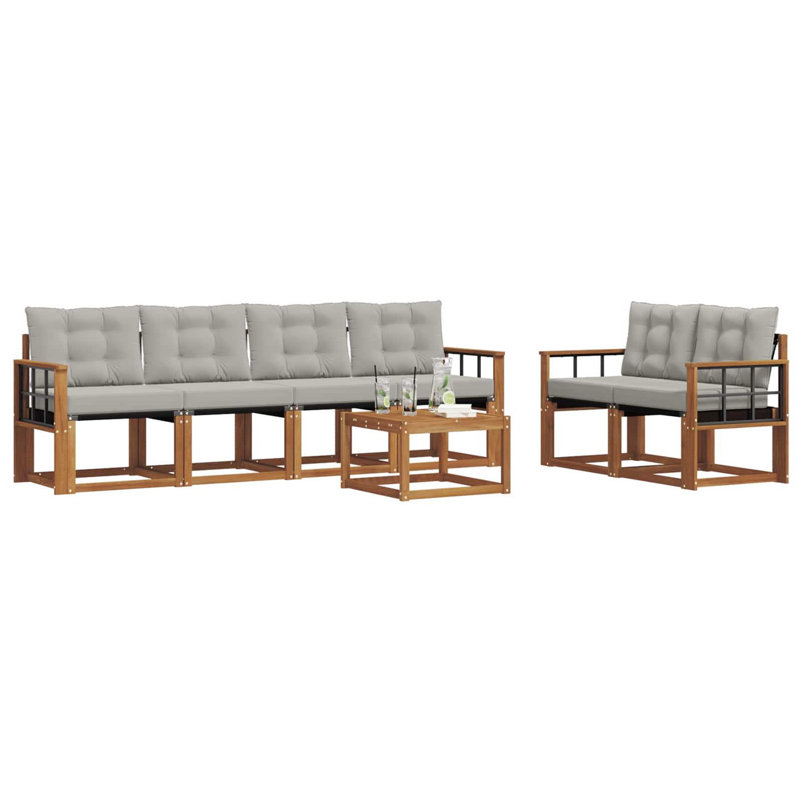 Das Gartenmöbel-Set verbindet Stil und Funktionalität und ist ein echter Hingucker für jeden Garten oder jede Terrasse. Es hat ein modernes Design mit klaren Linien und minimalen Details, das Eleganz verleiht, während es entspannende Aufenthalte und gesellige Treffen unterstützt. Komplett aus massivem Akazienholz gefertigt, ist das Set langlebig und sieht gut aus, perfekt für alle, die sowohl Praktikabilität als auch stilvolles Design bei ihren Außenmöbeln suchen. Langlebiges massives Akazienholz: Dieses Gartenmöbel-Set ist aus massivem Akazienholz und bekannt für seine Langlebigkeit und Widerstandsfähigkeit. Robuste Verarbeitung sorgt für gute Unterstützung und Stabilität, während der warme Holztönen jeden Garten oder jede Terrasse aufwertet. Wetterbeständiges Design: Mit einer lackierten Oberfläche hat das Set einen zusätzlichen Schutz gegen Sonne und leichten Regen. Die polierte Oberfläche bewahrt das schöne Aussehen und die Funktionalität für eine lange Lebensdauer in deinem Garten, auf deiner Terrasse oder in deinem Hinterhof. Komponenten & Design: Jedes Stück, von Armlehnen bis Rückenlehnen, ist sowohl stylisch als auch funktional. Zusätzliche Stütze sorgt für mehr Komfort, während das ansprechende Design ein harmonisches Gesamtbild schafft, das für verschiedene Outdoor-Anlässe passt. Komfort & Vielseitigkeit: Das modulare Design ermöglicht flexible Anordnungen, die zu diversen Räumen und Bedürfnissen passen. Perfekt zum Entspannen, für gesellige Zusammenkünfte oder ruhige Lesemomente – dieses Set passt sich ganz einfach an jede Außenumgebung an und maximiert Komfort und Benutzerfreundlichkeit. Einfache Pflege & Wartung: Halte das Möbelset in gutem Zustand, indem du die Oberfläche mit einem feuchten Tuch reinigst und aggressive Reiniger vermeidest. Regelmäßige Pflege hält das Aussehen frisch und verlängert die Lebensdauer der Möbel.