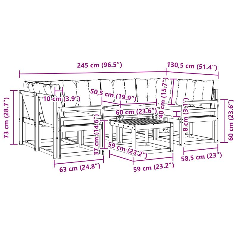 - 8 x Rückenkissen: 60 x 40 x 10 cm (LxBxH)