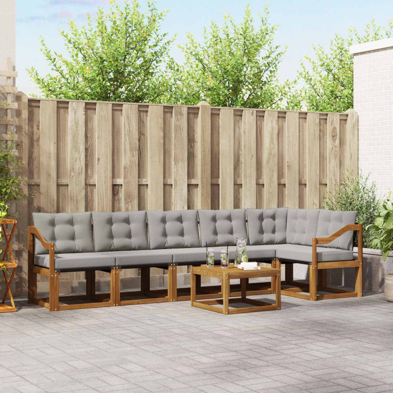 Dieses coole Sofa-Set bringt moderne Eleganz in deine Außenbereiche. Es hat klare Linien und ein minimalistisches Design, perfekt für den Garten, die Terrasse oder am Pool. Das Set sieht nicht nur gut aus, sondern ist auch super praktisch. Die schönen Brauntöne passen echt gut zu verschiedenen Außen-Dekoren und sorgen für gemütliche Momente in Komfort und Stil. Massiver Akazienholzrahmen Das Sofa-Set ist aus massivem Akazienholz gefertigt, das bekannt ist für seine dichte Struktur und schöne Holzmaserung. Dieses coole Material sorgt dafür, dass deine Möbel lange halten und stabil sind, auch bei täglichem Gebrauch im Freien. Vielseitig und robust Tests zeigen, dass dieses Sofa-Set fade-resistent ist und die Sitzflächen aus hochwertigem Textilene-Gewebe bestehen. Es hält Sonne und Feuchtigkeit gut stand und sieht immer frisch aus. Ob beim Kaffee am Morgen oder beim Entspannen am Abend, dieses Material bietet eine bequeme Sitzgelegenheit draußen. Praktische Armlehnen Die Armlehne ist umrahmt von massivem Akazienholz und hat ein schickes, praktisches Design. Sie hebt den Stil des Sofas hervor und bietet gleichzeitig einen bequemen Platz für deine Arme. Lege einfach dein Getränk oder Buch darauf, während du chillst. Wetterfeste Kissen Jedes Sofa kommt mit dick gepolsterten Kissen, die wetterfest sind und dir auch draußen langen Komfort bieten. Die Schaumfüllung sorgt für tolle Polsterung, und die abnehmbaren Bezüge mit Reißverschluss lassen sich kinderleicht reinigen. Einfache Pflege Achte darauf, dass dein Sofa-Set frisch aussieht, indem du einfach die Oberflächen mit einem feuchten Tuch abwischst. Du brauchst keine zusätzlichen Reinigungsmittel, was die Pflege super einfach macht, damit du das ganze Jahr über einen einladenden Sitzbereich genießen kannst.