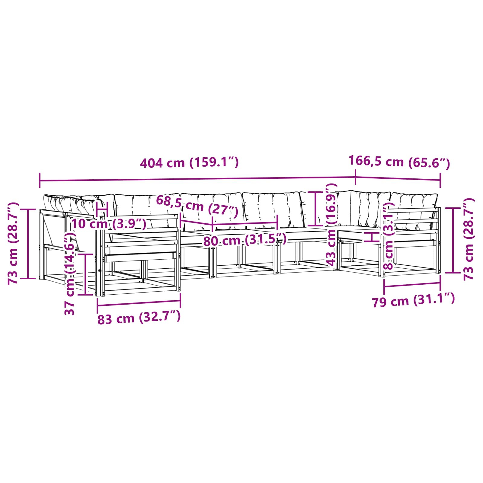 - 9 x Rückenkissen: 80 x 43 x 10 cm (LxWxH)