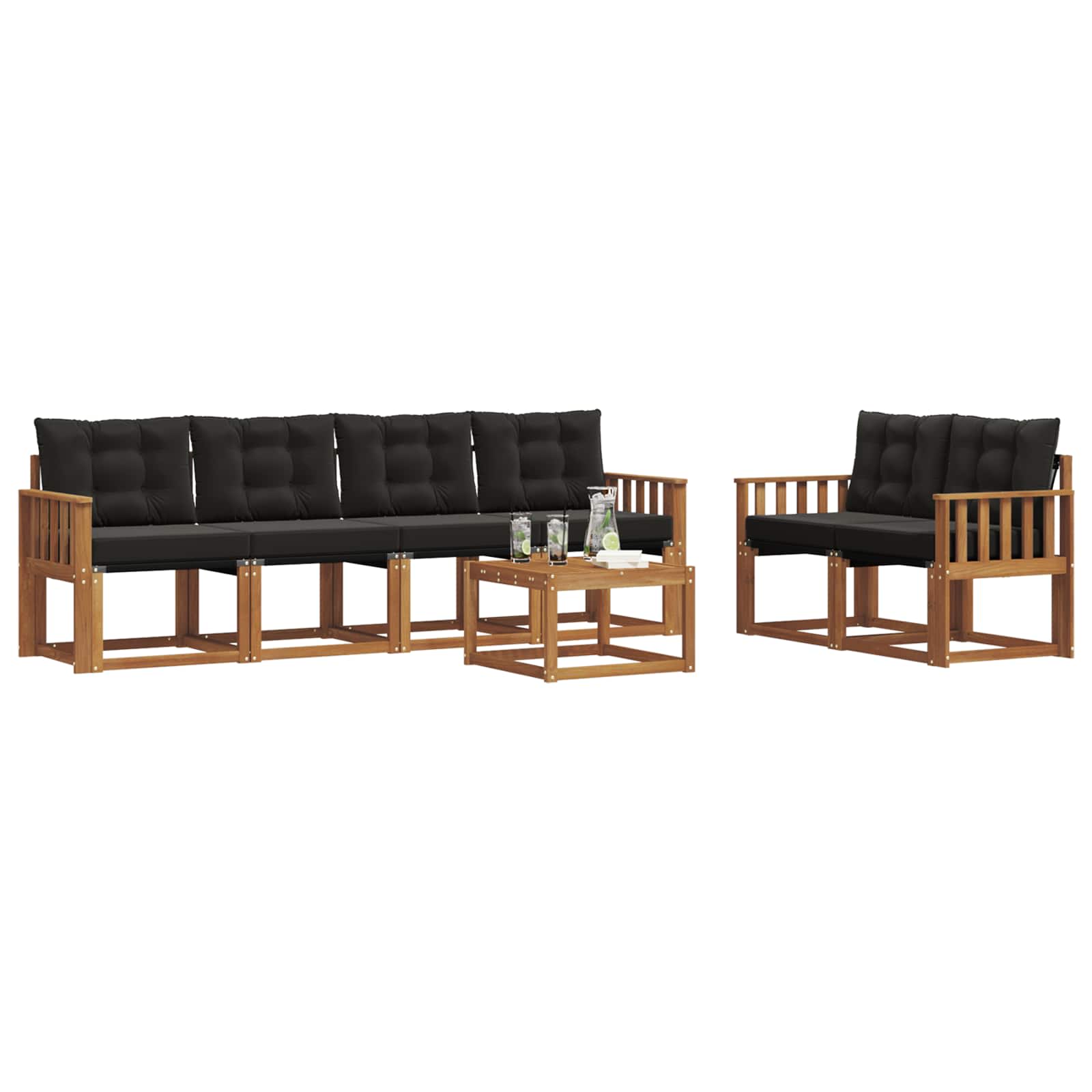 Das Gartenmöbel-Set verbindet Stil und Funktionalität und ist ein echter Hingucker für jeden Garten oder jede Terrasse. Es hat ein modernes Design mit klaren Linien und minimalen Details, das Eleganz verleiht, während es entspannende Aufenthalte und gesellige Treffen unterstützt. Komplett aus massivem Akazienholz gefertigt, ist das Set langlebig und sieht gut aus, perfekt für alle, die sowohl Praktikabilität als auch stilvolles Design bei ihren Außenmöbeln suchen. Langlebiges massives Akazienholz: Dieses Gartenmöbel-Set ist aus massivem Akazienholz und bekannt für seine Langlebigkeit und Widerstandsfähigkeit. Robuste Verarbeitung sorgt für gute Unterstützung und Stabilität, während der warme Holztönen jeden Garten oder jede Terrasse aufwertet. Wetterbeständiges Design: Mit einer lackierten Oberfläche hat das Set einen zusätzlichen Schutz gegen Sonne und leichten Regen. Die polierte Oberfläche bewahrt das schöne Aussehen und die Funktionalität für eine lange Lebensdauer in deinem Garten, auf deiner Terrasse oder in deinem Hinterhof. Komponenten & Design: Jedes Stück, von Armlehnen bis Rückenlehnen, ist sowohl stylisch als auch funktional. Zusätzliche Stütze sorgt für mehr Komfort, während das ansprechende Design ein harmonisches Gesamtbild schafft, das für verschiedene Outdoor-Anlässe passt. Komfort & Vielseitigkeit: Das modulare Design ermöglicht flexible Anordnungen, die zu diversen Räumen und Bedürfnissen passen. Perfekt zum Entspannen, für gesellige Zusammenkünfte oder ruhige Lesemomente – dieses Set passt sich ganz einfach an jede Außenumgebung an und maximiert Komfort und Benutzerfreundlichkeit. Einfache Pflege & Wartung: Halte das Möbelset in gutem Zustand, indem du die Oberfläche mit einem feuchten Tuch reinigst und aggressive Reiniger vermeidest. Regelmäßige Pflege hält das Aussehen frisch und verlängert die Lebensdauer der Möbel.